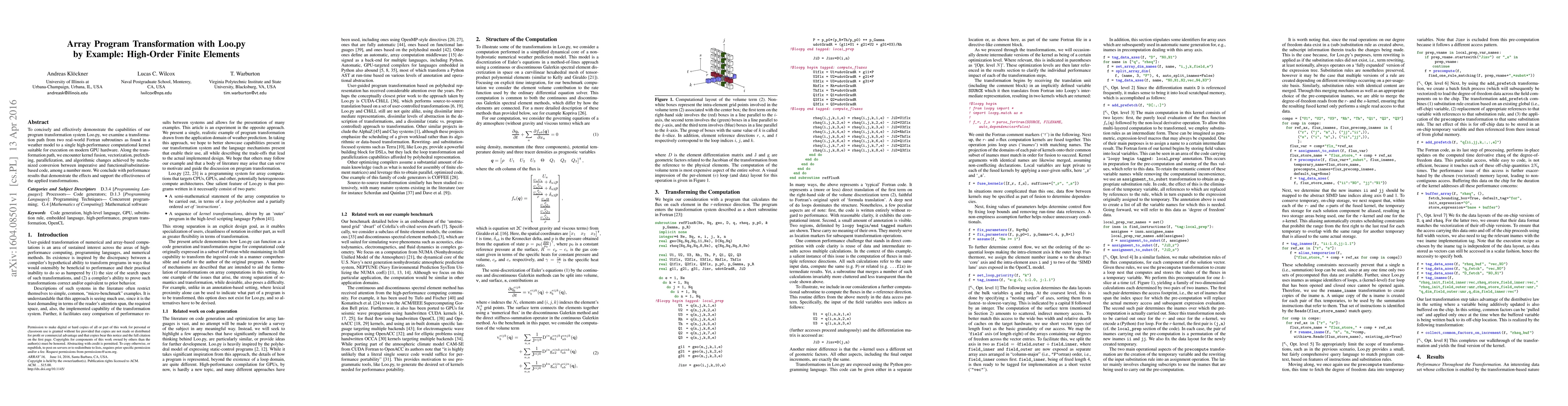 To concisely and effectively demonstrate the capabilities of our program transformation system Loo.py, we examine a transformation path from two real-world Fortran subroutines as found in a weather model to a single high-performance computational kernel suitable for execution on modern GPU hardware. Along the transformation path, we encounter kernel fusion, vectorization, prefetch- ing, parallelization, and algorithmic changes achieved by mechanized conversion between imperative and functional/substitution- based code, among a number more. We conclude with performance results that demonstrate the effects and support the effectiveness of the applied transformations.