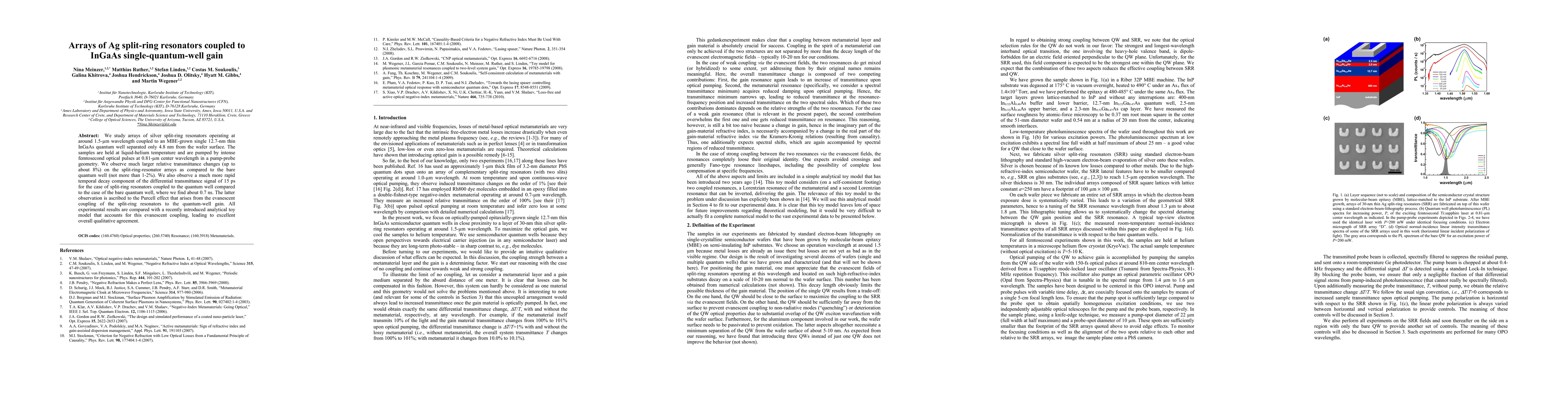 This paper investigates arrays of silver split-ring resonators coupled to an InGaAs quantum well, observing significant relative transmittance changes and a faster decay time due to evanescent coupling. Experimental results align well with an analytical model that describes this coupling.