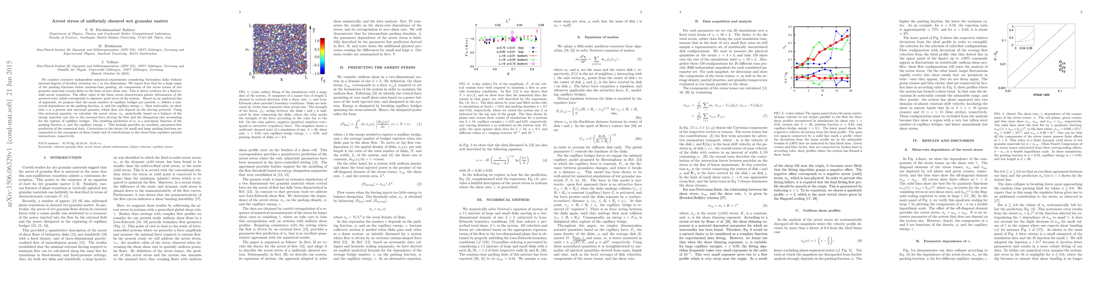 This paper investigates the stress behavior of wet granular matter under shear, demonstrating a fluid-to-solid arrest transition where stress remains finite at zero shear rate. The study proposes a universal quantity, the mean number of capillary bridges per particle, to analytically predict the arrest stress, showing excellent agreement with numerical simulations.