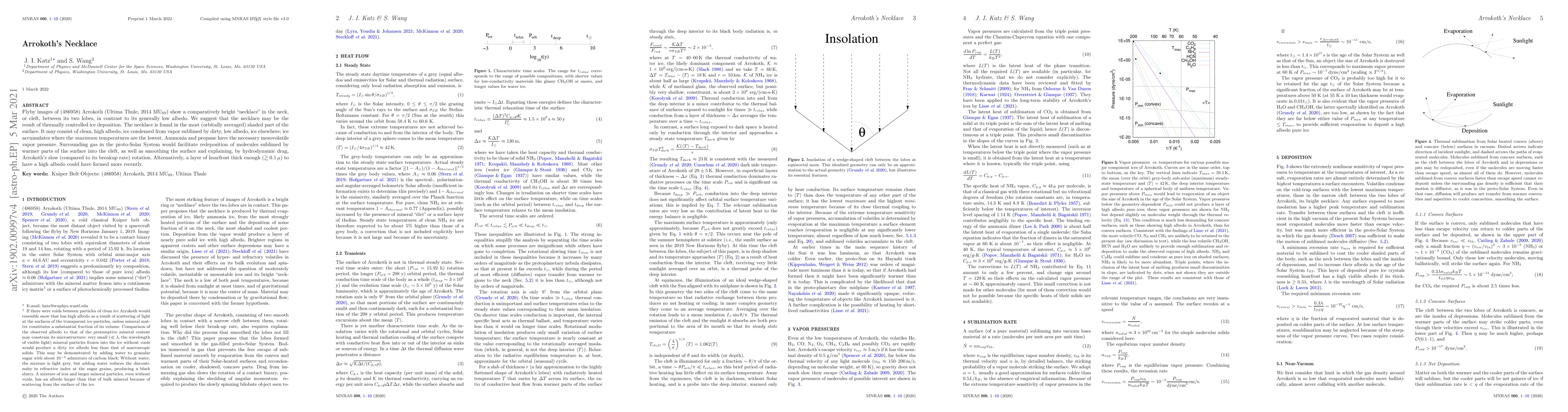 Flyby images of (486958) Arrokoth (Ultima Thule, 2014 MU$_{69}$) show a comparatively bright "necklace" in the neck, or cleft between its two lobes, in contrast to its generally low albedo. We suggest that the necklace may be the result of thermally controlled ice deposition. The necklace is found in the most (orbitally averaged) shaded part of its surface. It may consist of clean, high albedo, ice condensed from vapor sublimed by dirty, low albedo, ice elsewhere; clean ice accumulates where the maximum temperatures are the lowest. Ammonia and propane have the necessary mesovolatile vapor pressure. Surrounding gas in the proto-Solar System would facilitate redeposition of molecules sublimed by warmer parts of the surface into the cleft, as well as smoothing the surface and explaining, by hydrodynamic drag, Arrokoth's slow (compared to its breakup rate) rotation. Alternatively, a layer of hoarfrost thick enough ($\gtrsim 0.1\,\mu$) to have a high albedo could have formed more recently.