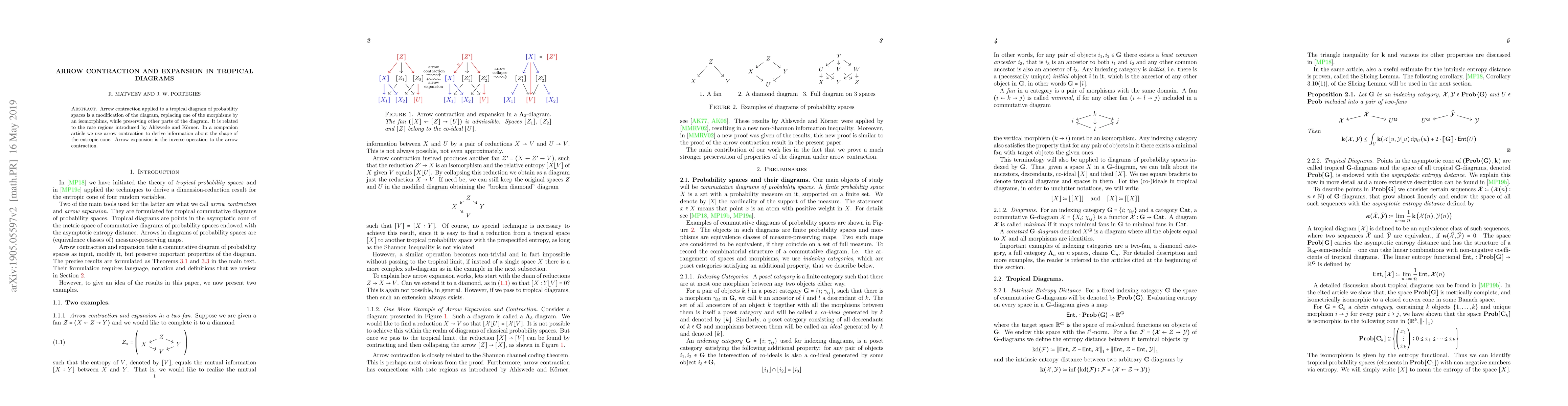 Researchers explore a modification of tropical diagrams in probability theory, introducing 'arrow contraction' to study rate regions and the shape of entropic cones. This work builds on existing concepts like Ahlswede-K"orner rate regions.