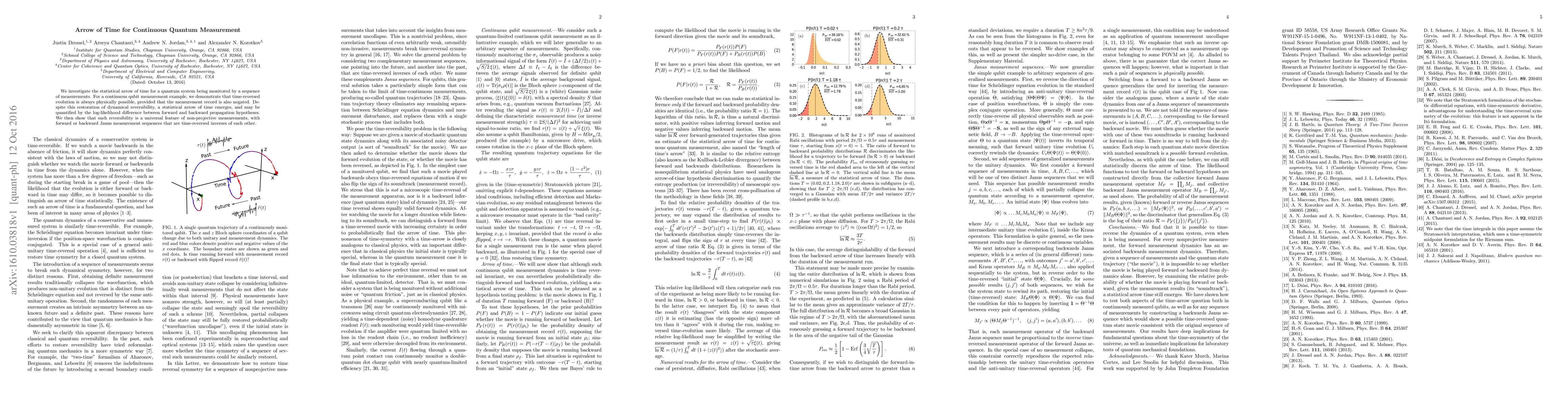The research investigates the statistical arrow of time for a quantum system under continuous measurement, demonstrating that time-reversed evolution is possible with a negated measurement record, despite this reversibility, a statistical arrow of time emerges, quantifiable by the log-likelihood difference between forward and backward propagation hypotheses. The study also shows that this reversibility is a universal feature of non-projective measurements.
