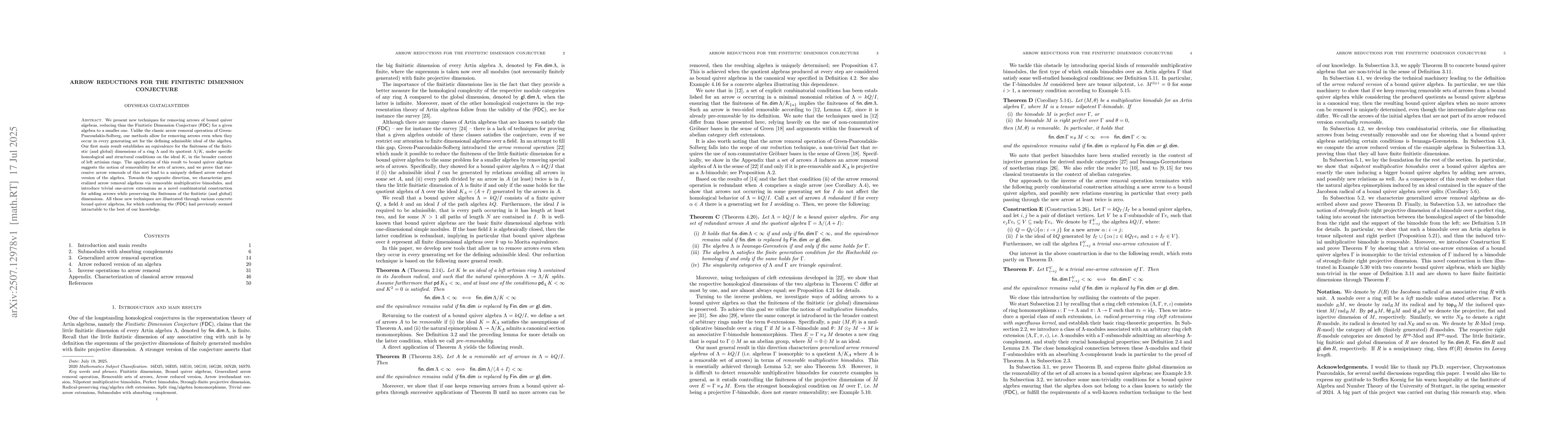 We present new techniques for removing arrows of bound quiver algebras, reducing thus the Finitistic Dimension Conjecture $\mathsf{(FDC)}$ for a given algebra to a smaller one. Unlike the classic arrow removal operation of Green-Psaroudakis-Solberg, our methods allow for removing arrows even when they occur in every generating set for the defining admissible ideal of the algebra. Our first main result establishes an equivalence for the finiteness of the finitistic (and global) dimensions of a ring $\Lambda$ and its quotient $\Lambda/K$, under specific homological and structural conditions on the ideal $K$, in the broader context of left artinian rings. The application of this result to bound quiver algebras suggests the notion of removability for sets of arrows, and we prove that successive arrow removals of this sort lead to a uniquely defined arrow reduced version of the algebra. Towards the opposite direction, we characterize generalized arrow removal algebras via removable multiplicative bimodules, and introduce trivial one-arrow extensions as a novel combinatorial construction for adding arrows while preserving the finiteness of the finitistic (and global) dimensions. All these new techniques are illustrated through various concrete bound quiver algebras, for which confirming the $\mathsf{(FDC)}$ had previously seemed intractable to the best of our knowledge.