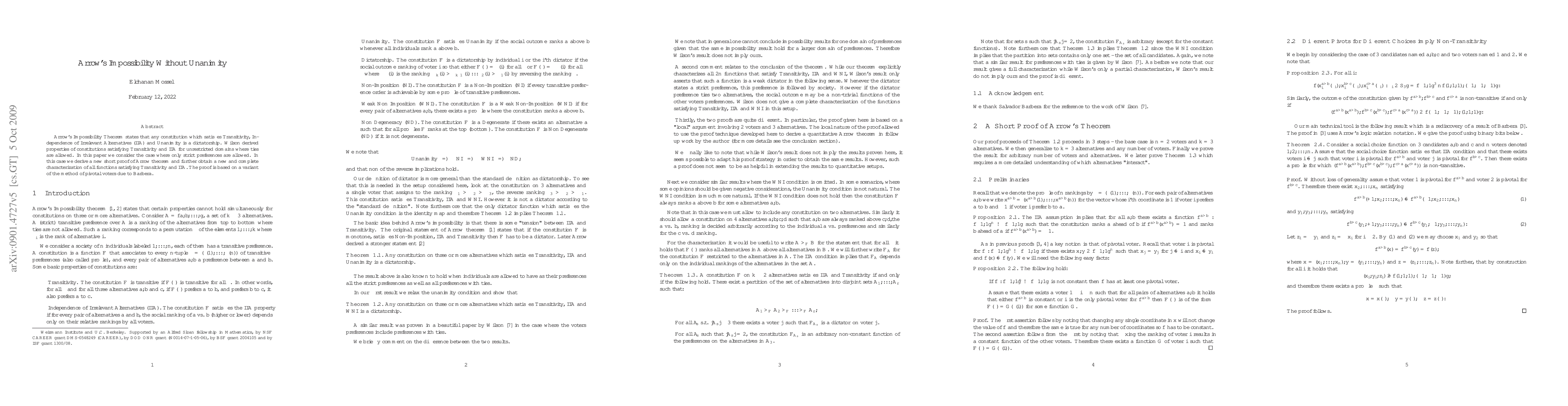 This paper presents a new proof of Arrow's Impossibility Theorem under strict preference conditions, and provides a complete characterization of all functions satisfying Transitivity and Independence of Irrelevant Alternatives without the requirement of Unanimity.