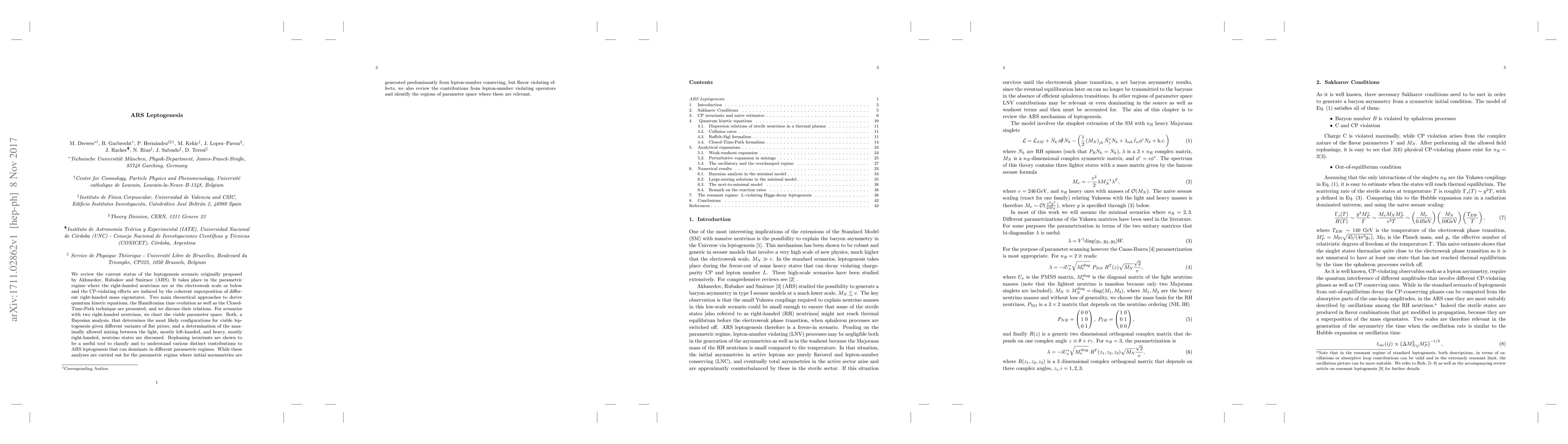 We review the current status of the leptogenesis scenario originally proposed by Akhmedov, Rubakov and Smirnov (ARS). It takes place in the parametric regime where the right-handed neutrinos are at the electroweak scale or below and the CP-violating effects are induced by the coherent superposition of different right-handed mass eigenstates. Two main theoretical approaches to derive quantum kinetic equations, the Hamiltonian time evolution as well as the Closed-Time-Path technique are presented, and we discuss their relations. For scenarios with two right-handed neutrinos, we chart the viable parameter space. Both, a Bayesian analysis, that determines the most likely configurations for viable leptogenesis given different variants of flat priors, and a determination of the maximally allowed mixing between the light, mostly left-handed, and heavy, mostly right-handed, neutrino states are discussed. Rephasing invariants are shown to be a useful tool to classify and to understand various distinct contributions to ARS leptogenesis that can dominate in different parametric regimes. While these analyses are carried out for the parametric regime where initial asymmetries are generated predominantly from lepton-number conserving, but flavor violating effects, we also review the contributions from lepton-number violating operators and identify the regions of parameter space where these are relevant.