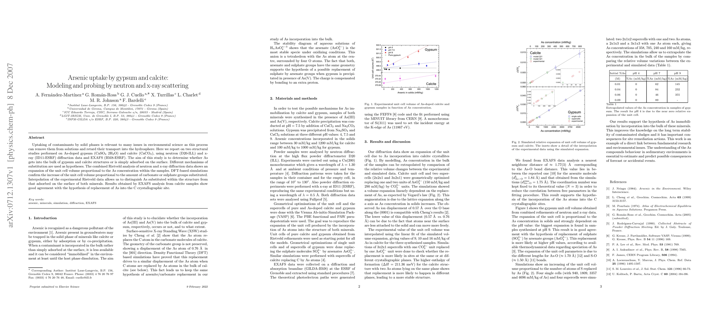 Researchers used neutron and x-ray scattering to study how arsenic is absorbed into gypsum and calcite minerals, finding that it penetrates the bulk structure rather than just adsorbing on the surface.