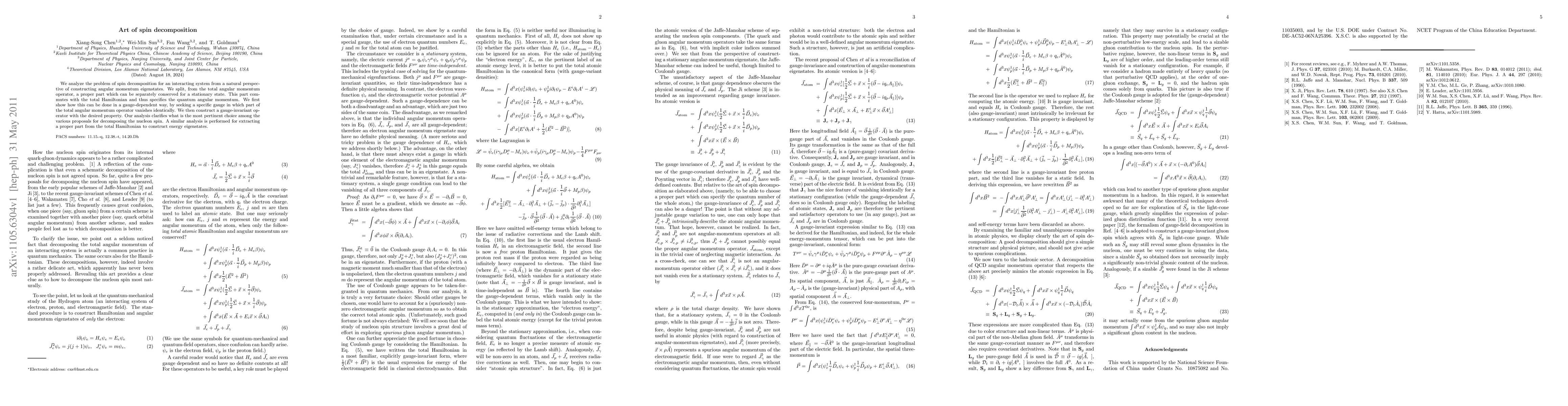 We analyze the problem of spin decomposition for an interacting system from a natural perspective of constructing angular momentum eigenstates. We split, from the total angular momentum operator, a proper part which can be separately conserved for a stationary state. This part commutes with the total Hamiltonian and thus specifies the quantum angular momentum. We first show how this can be done in a gauge-dependent way, by seeking a specific gauge in which part of the total angular momentum operator vanishes identically. We then construct a gauge-invariant operator with the desired property. Our analysis clarifies what is the most pertinent choice among the various proposals for decomposing the nucleon spin. A similar analysis is performed for extracting a proper part from the total Hamiltonian to construct energy eigenstates.