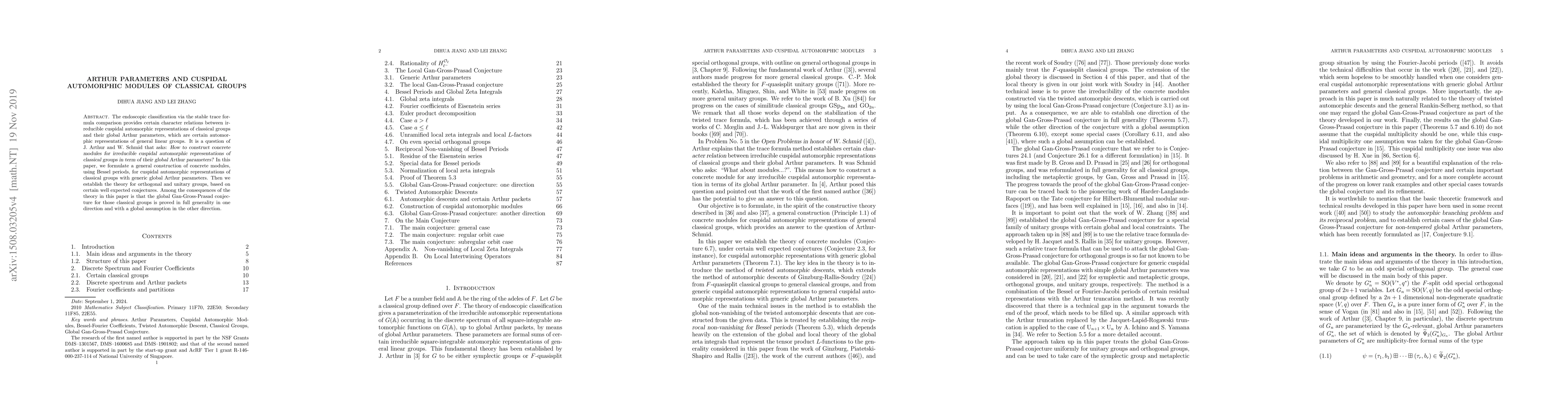 This paper constructs concrete cuspidal automorphic modules for classical groups using Bessel periods, based on their global Arthur parameters. It establishes this theory for orthogonal and unitary groups, proving the global Gan-Gross-Prasad conjecture in one direction fully and in the other direction with a global assumption.