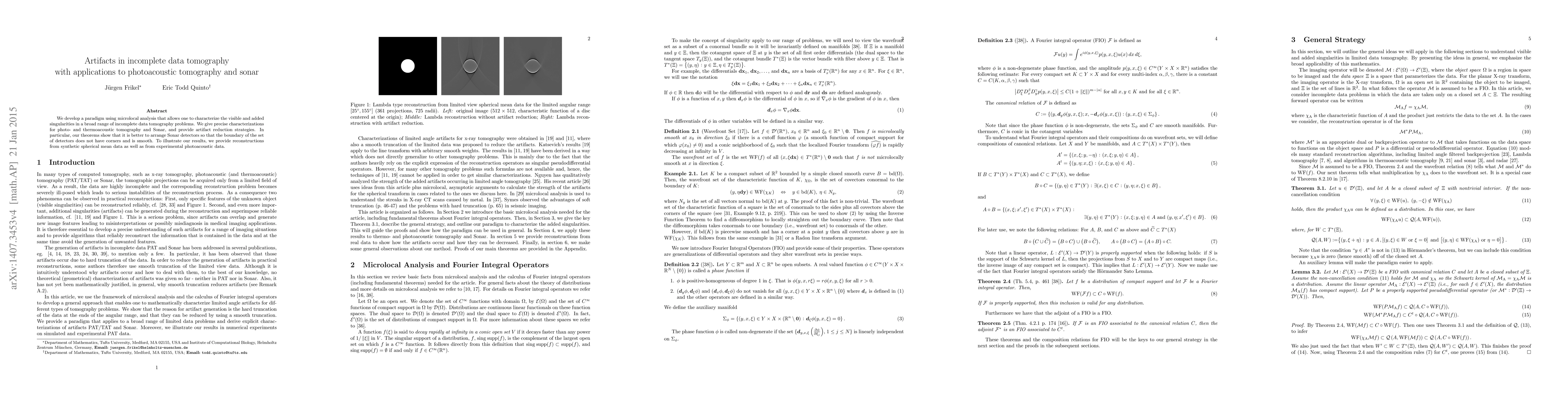 We develop a paradigm using microlocal analysis that allows one to characterize the visible and added singularities in a broad range of incomplete data tomography problems. We give precise characterizations for photo- and thermoacoustic tomography and Sonar, and provide artifact reduction strategies. In particular, our theorems show that it is better to arrange Sonar detectors so that the boundary of the set of detectors does not have corners and is smooth. To illustrate our results, we provide reconstructions from synthetic spherical mean data as well as from experimental photoacoustic data.