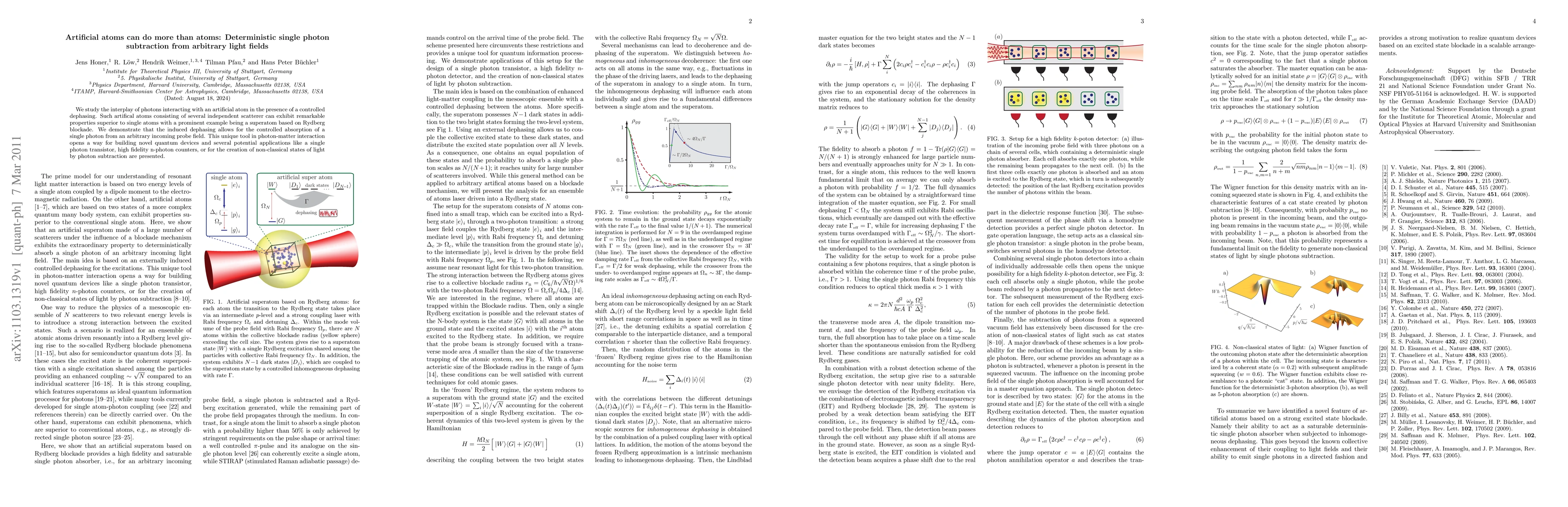 This paper investigates how artificial atoms, composed of multiple scatterers, can surpass natural atoms in photon interactions, demonstrating controlled single photon subtraction from arbitrary light fields through induced dephasing. This capability enables potential applications in quantum devices, including single photon transistors and high fidelity n-photon counters.