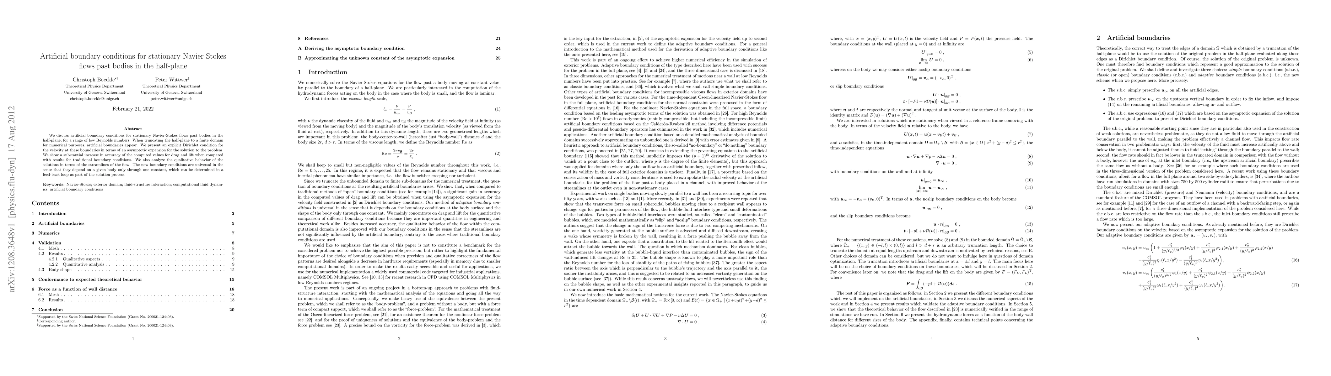 Researchers developed artificial boundary conditions for simulating Navier-Stokes flows past bodies in a half-plane, improving accuracy and offering a universal solution that depends on only one constant.