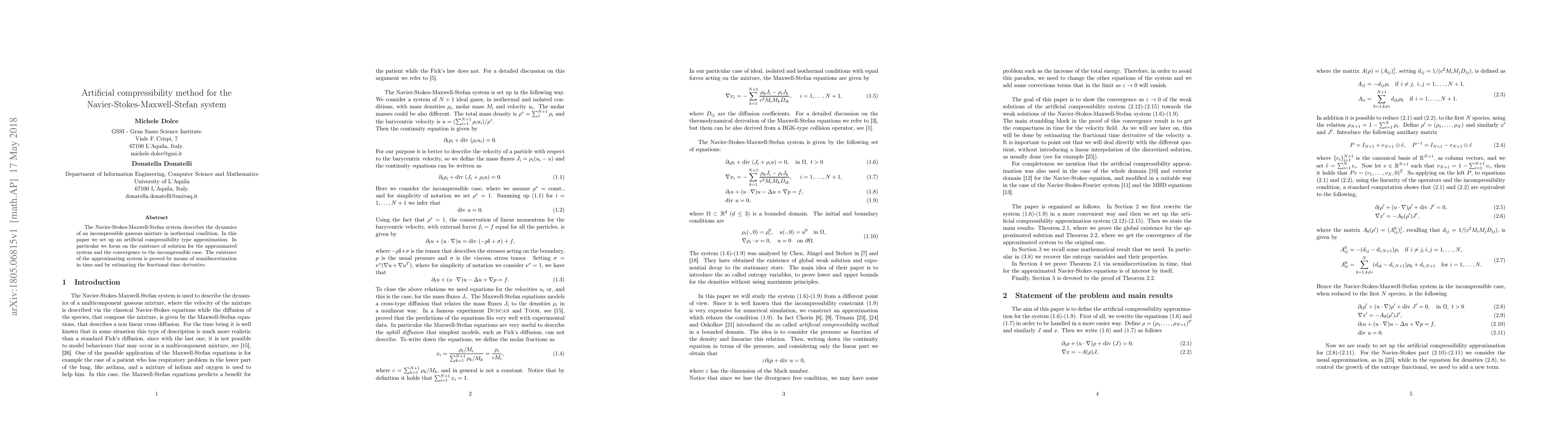 Summary: This paper proposes an artificial compressibility method for the Navier-Stokes-Maxwell-Stefan system, proving the existence of solutions for the approximated system through semidiscretization in time and convergence analysis to the incompressible case.