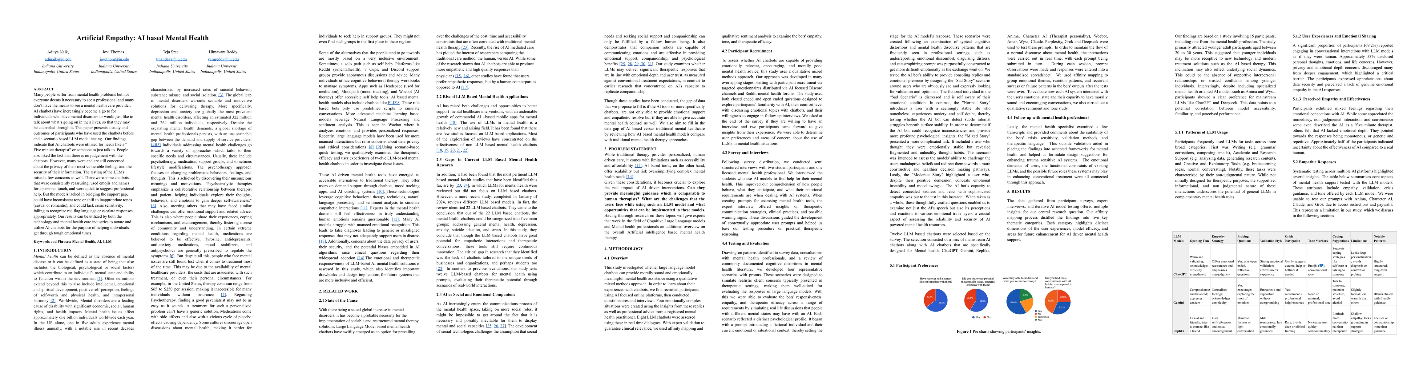 The paper presents a comprehensive analysis of current AI chatbot capabilities and limitations in mental health applications.