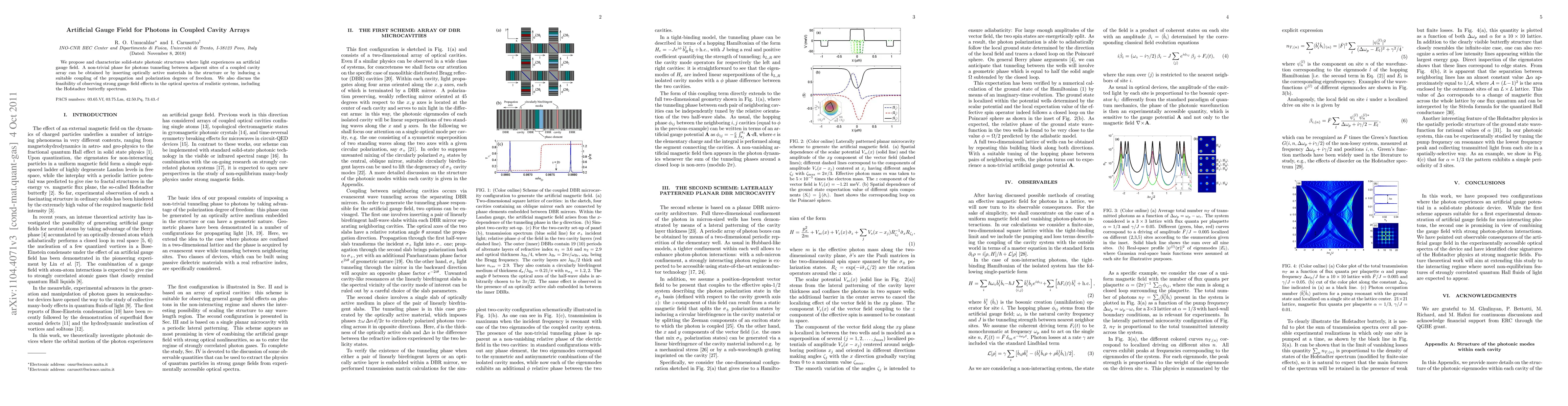 We propose and characterize solid-state photonic structures where light experiences an artificial gauge field. A suitable coupling of the propagation and polarization degrees of freedom introduces a geometrical phase for photons tunneling between adjacent sites of a coupled cavity array. We then discuss the feasibility of observing strong gauge field effects in the optical spectra of realistic systems, including the Hofstadter butterfly spectrum.