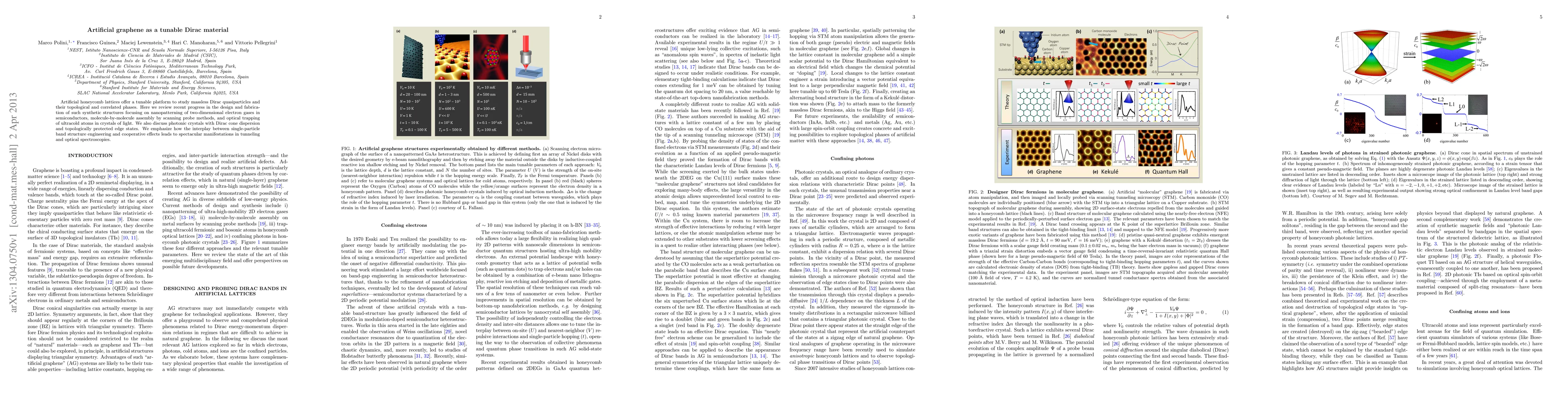 Artificial honeycomb lattices offer a tunable platform to study massless Dirac quasiparticles and their topological and correlated phases. Here we review recent progress in the design and fabrication of such synthetic structures focusing on nanopatterning of two-dimensional electron gases in semiconductors, molecule-by-molecule assembly by scanning probe methods, and optical trapping of ultracold atoms in crystals of light. We also discuss photonic crystals with Dirac cone dispersion and topologically protected edge states. We emphasize how the interplay between single-particle band structure engineering and cooperative effects leads to spectacular manifestations in tunneling and optical spectroscopies.
