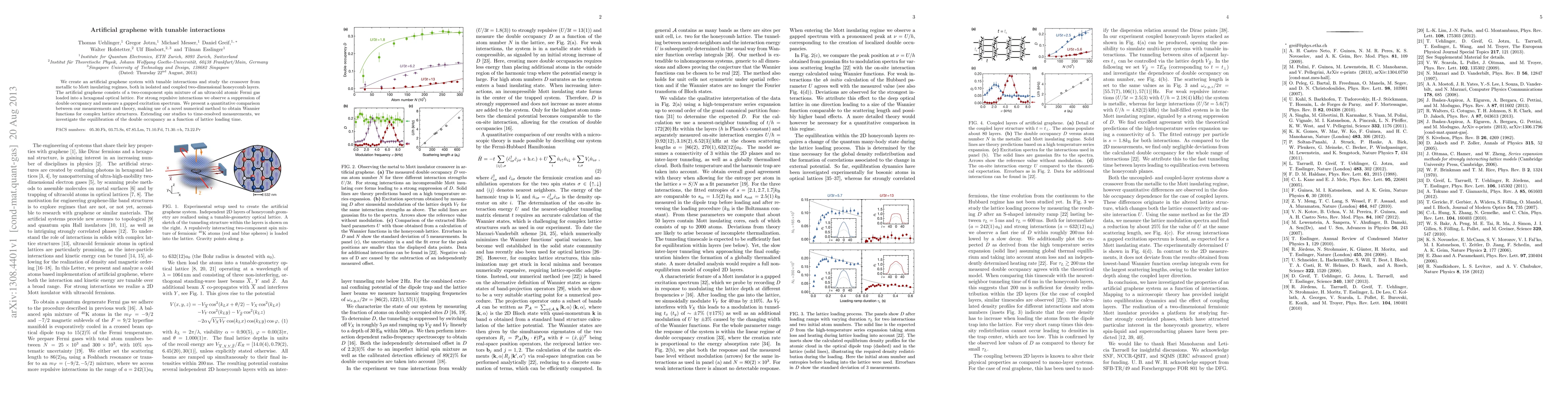 The work presents a unique approach to creating and studying artificial graphene with tunable interactions using ultracold atomic Fermi gases in a hexagonal optical lattice, providing insights into the metal-to-Mott insulator crossover and equilibration dynamics.