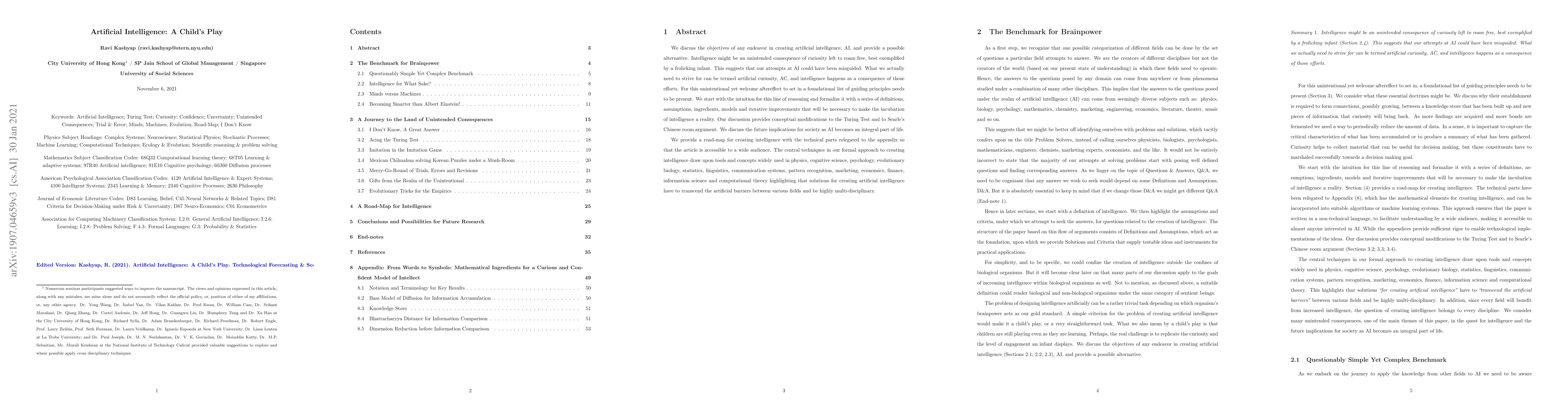 We discuss the objectives of any endeavor in creating artificial intelligence, AI, and provide a possible alternative. Intelligence might be an unintended consequence of curiosity left to roam free, best exemplified by a frolicking infant. This suggests that our attempts at AI could have been misguided. What we actually need to strive for can be termed artificial curiosity, AC, and intelligence happens as a consequence of those efforts. For this unintentional yet welcome aftereffect to set in a foundational list of guiding principles needs to be present. We start with the intuition for this line of reasoning and formalize it with a series of definitions, assumptions, ingredients, models and iterative improvements that will be necessary to make the incubation of intelligence a reality. Our discussion provides conceptual modifications to the Turing Test and to Searle's Chinese room argument. We discuss the future implications for society as AI becomes an integral part of life. We provide a road-map for creating intelligence with the technical parts relegated to the appendix so that the article is accessible to a wide audience. The central techniques in our formal approach to creating intelligence draw upon tools and concepts widely used in physics, cognitive science, psychology, evolutionary biology, statistics, linguistics, communication systems, pattern recognition, marketing, economics, finance, information science and computational theory highlighting that solutions for creating artificial intelligence have to transcend the artificial barriers between various fields and be highly multi-disciplinary.