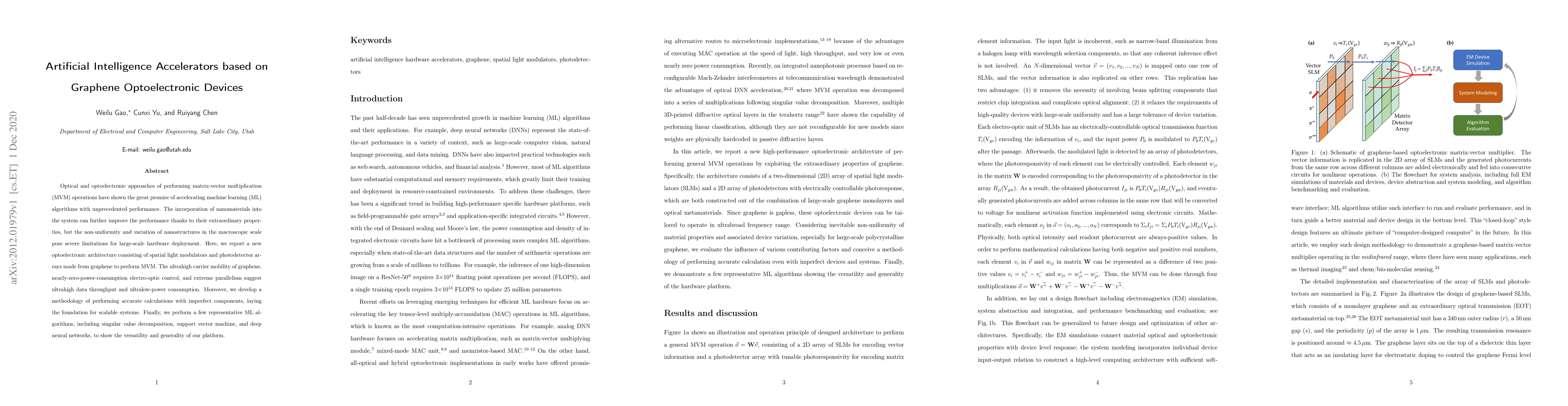 Optical and optoelectronic approaches of performing matrix-vector multiplication (MVM) operations have shown the great promise of accelerating machine learning (ML) algorithms with unprecedented performance. The incorporation of nanomaterials into the system can further improve the performance thanks to their extraordinary properties, but the non-uniformity and variation of nanostructures in the macroscopic scale pose severe limitations for large-scale hardware deployment. Here, we report a new optoelectronic architecture consisting of spatial light modulators and photodetector arrays made from graphene to perform MVM. The ultrahigh carrier mobility of graphene, nearly-zero-power-consumption electro-optic control, and extreme parallelism suggest ultrahigh data throughput and ultralow-power consumption. Moreover, we develop a methodology of performing accurate calculations with imperfect components, laying the foundation for scalable systems. Finally, we perform a few representative ML algorithms, including singular value decomposition, support vector machine, and deep neural networks, to show the versatility and generality of our platform.