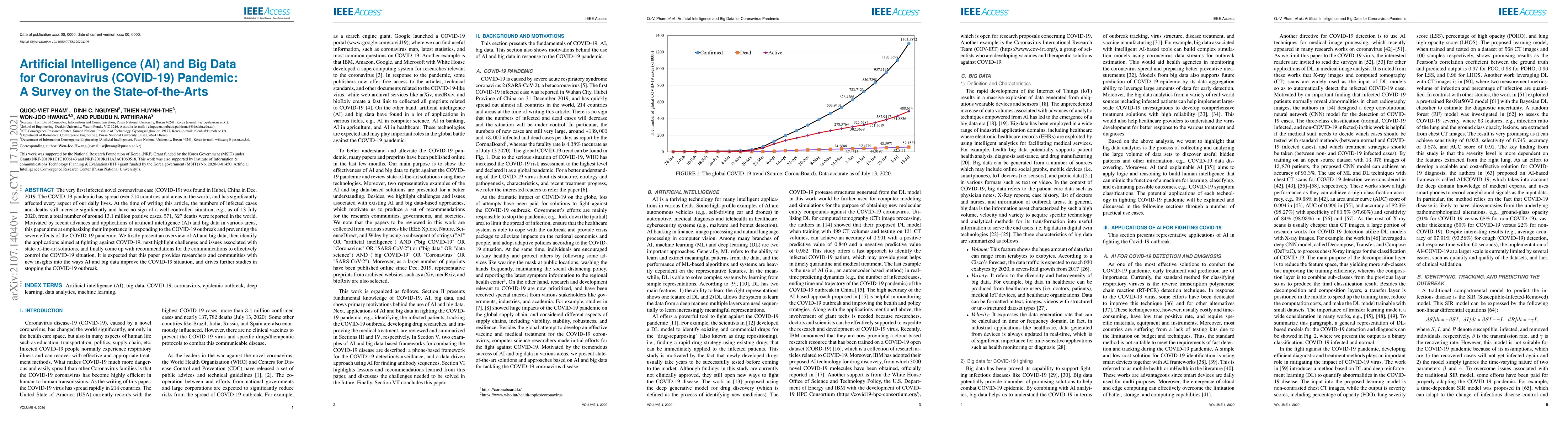 This paper surveys the application of artificial intelligence (AI) and big data in combating the COVID-19 pandemic, highlighting their role in tracking and managing the outbreak, while also discussing associated challenges and providing recommendations for future research.