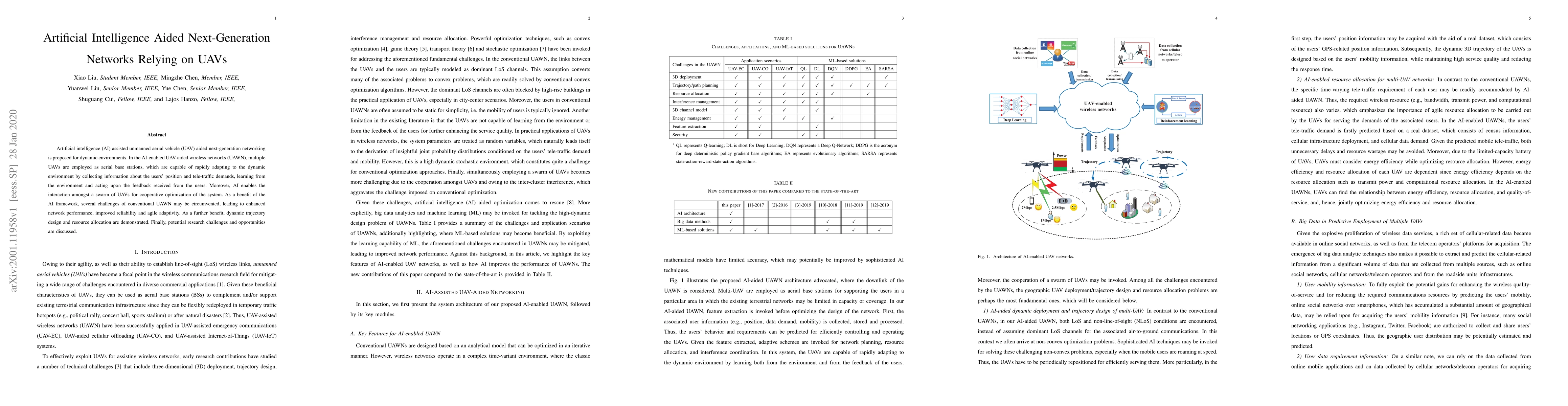 A new network system using AI-assisted UAVs is proposed to improve performance in dynamic environments. The system uses multiple UAVs as base stations that can adapt to changing conditions with the help of AI technology.