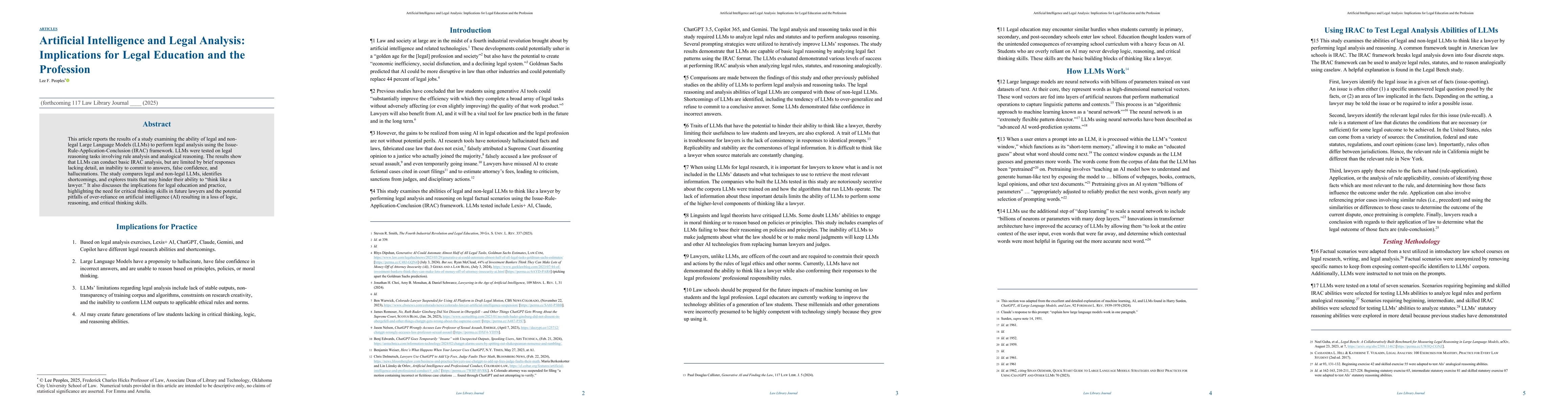 This research highlights the implications for legal education and practice, emphasizing the need to preserve critical thinking skills amidst potential overreliance on AI, which may lead to a decline in logic, reasoning, and analytical abilities.