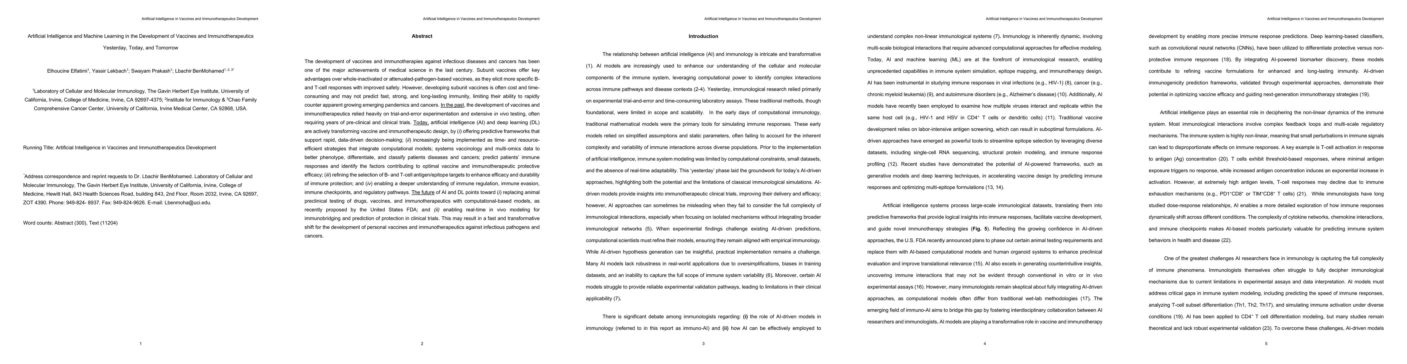 In the past, the development of vaccines and immunotherapeutics relied heavily on trial-and-error experimentation and extensive in vivo testing, often requiring years of pre-clinical and clinical trials. Today, artificial intelligence (AI) and deep learning (DL) are actively transforming vaccine and immunotherapeutic design, by (i) offering predictive frameworks that support rapid, data-driven decision-making; (ii) increasingly being implemented as time- and resource-efficient strategies that integrate computational models, systems vaccinology, and multi-omics data to better phenotype, differentiate, and classify patient diseases and cancers; predict patients' immune responses; and identify the factors contributing to optimal vaccine and immunotherapeutic protective efficacy; (iii) refining the selection of B- and T-cell antigen/epitope targets to enhance efficacy and durability of immune protection; and (iv) enabling a deeper understanding of immune regulation, immune evasion, immune checkpoints, and regulatory pathways. The future of AI and DL points toward (i) replacing animal preclinical testing of drugs, vaccines, and immunotherapeutics with computational-based models, as recently proposed by the United States FDA; and (ii) enabling real-time in vivo modeling for immunobridging and prediction of protection in clinical trials. This may result in a fast and transformative shift for the development of personal vaccines and immunotherapeutics against infectious pathogens and cancers.