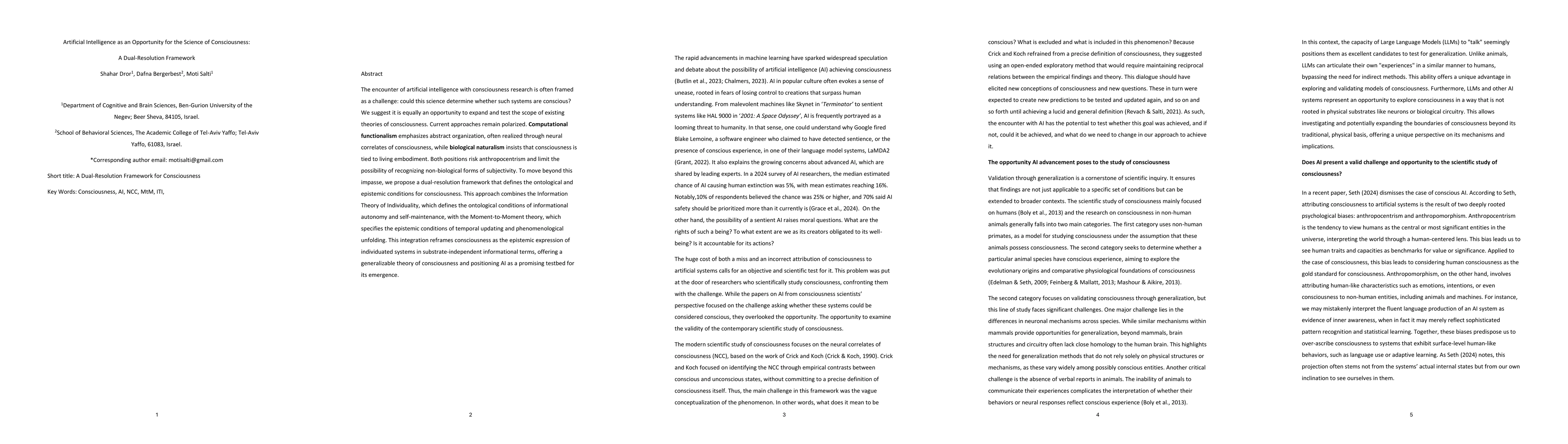 The encounter of artificial intelligence with consciousness research is often framed as a challenge: could this science determine whether such systems are conscious? We suggest it is equally an opportunity to expand and test the scope of existing theories of consciousness. Current approaches remain polarized. Computational functionalism emphasizes abstract organization, often realized through neural correlates of consciousness, while biological naturalism insists that consciousness is tied to living embodiment. Both positions risk anthropocentrism and limit the possibility of recognizing non-biological forms of subjectivity. To move beyond this impasse, we propose a dual-resolution framework that defines the ontological and epistemic conditions for consciousness. This approach combines the Information Theory of Individuality, which defines the ontological conditions of informational autonomy and self-maintenance, with the Moment-to-Moment theory, which specifies the epistemic conditions of temporal updating and phenomenological unfolding. This integration reframes consciousness as the epistemic expression of individuated systems in substrate-independent informational terms, offering a generalizable theory of consciousness and positioning AI as a promising testbed for its emergence.