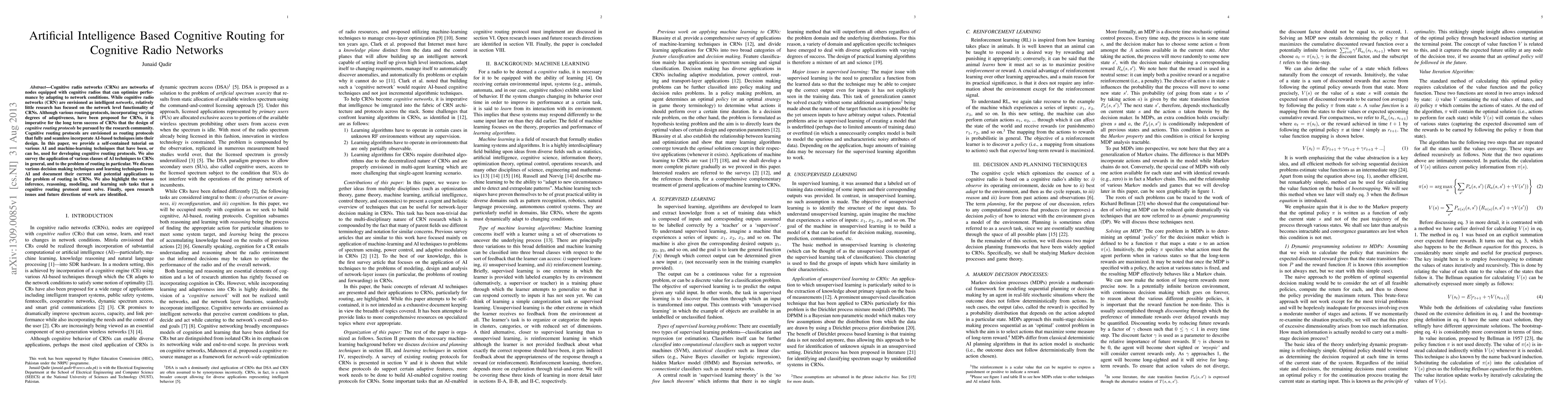 This paper provides a comprehensive tutorial on AI-based cognitive routing protocols for cognitive radio networks, surveying various AI techniques and their applications to routing. It highlights open research issues and future directions for developing intelligent routing protocols.
