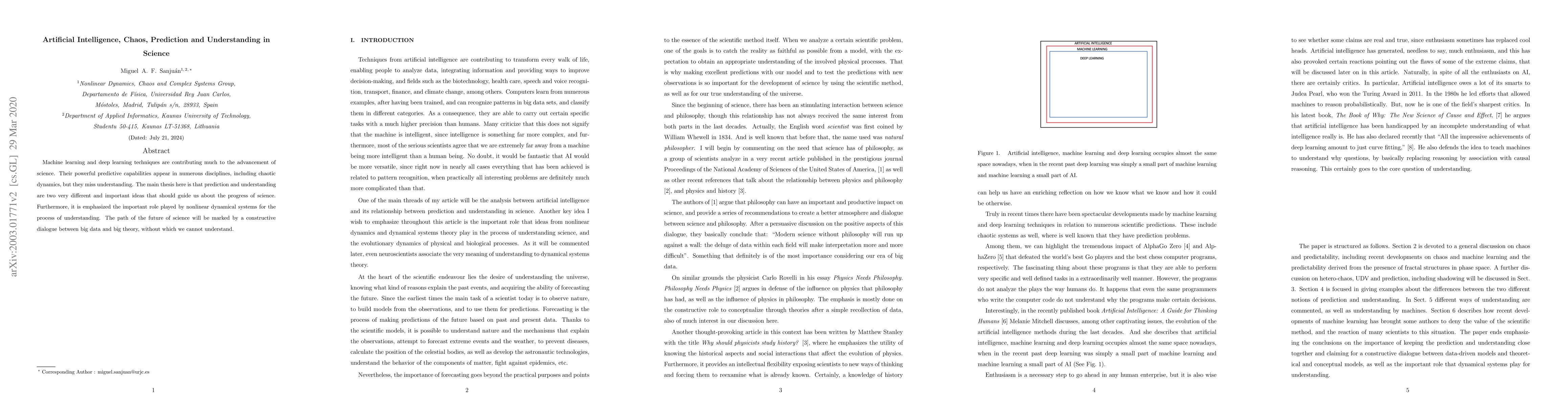 Machine learning and deep learning techniques are contributing much to the advancement of science. Their powerful predictive capabilities appear in numerous disciplines, including chaotic dynamics, but they miss understanding. The main thesis here is that prediction and understanding are two very different and important ideas that should guide us about the progress of science. Furthermore, it is emphasized the important role played by that nonlinear dynamical systems for the process of understanding. The path of the future of science will be marked by a constructive dialogue between big data and big theory, without which we cannot understand.