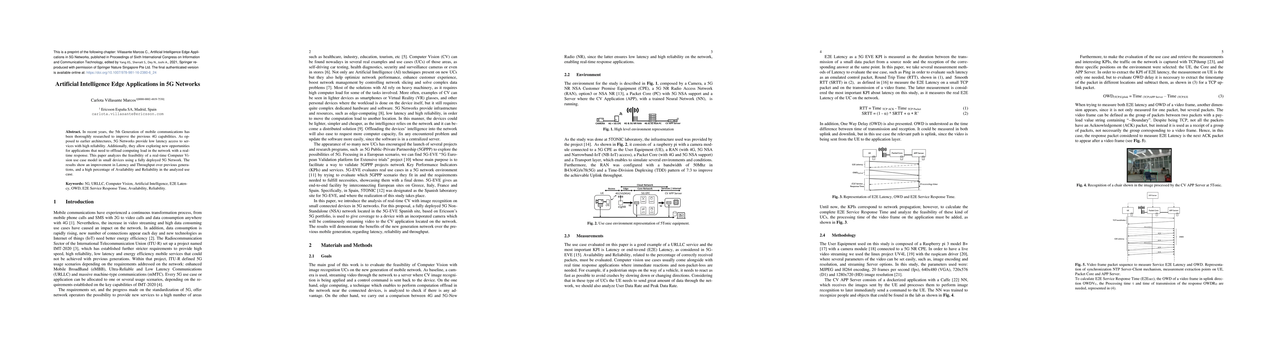 This paper explores the feasibility of real-time Computer Vision applications in 5G Networks, showing improved latency and throughput while maintaining high availability and reliability.