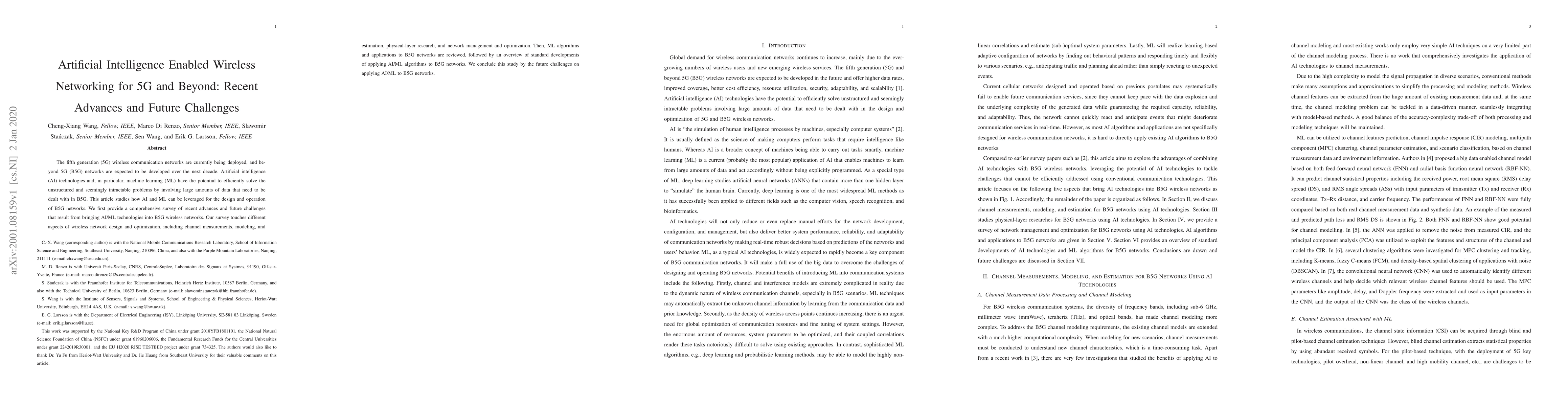 This paper surveys recent advances and future challenges in leveraging artificial intelligence and machine learning for the design and operation of beyond 5G wireless networks, focusing on aspects like channel modeling, physical-layer research, and network optimization, while also discussing the development of relevant standards.