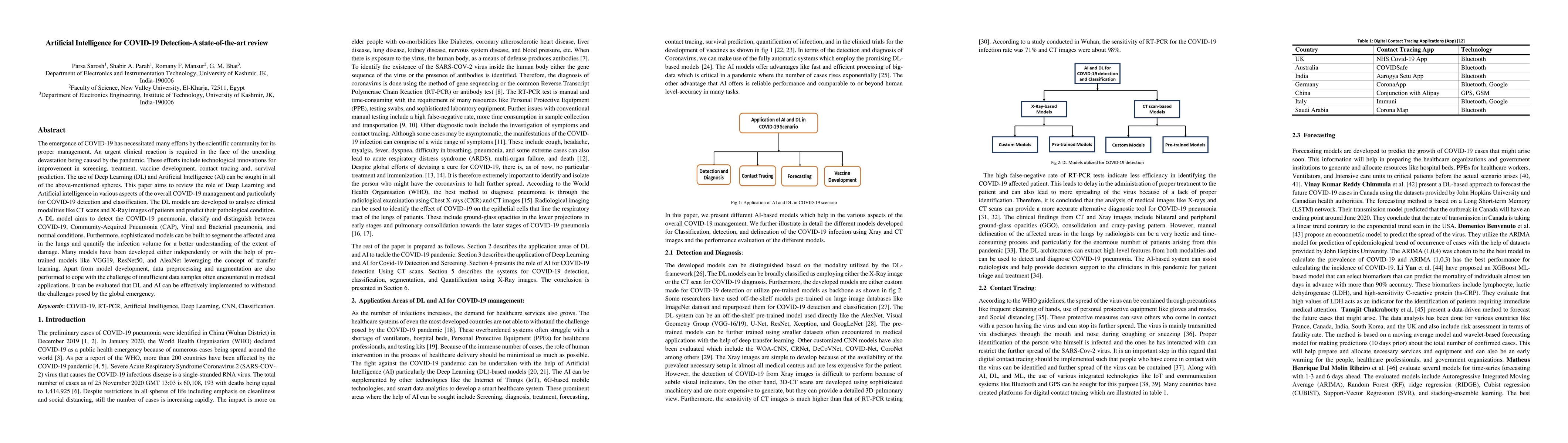 The emergence of COVID-19 has necessitated many efforts by the scientific community for its proper management. An urgent clinical reaction is required in the face of the unending devastation being caused by the pandemic. These efforts include technological innovations for improvement in screening, treatment, vaccine development, contact tracing and, survival prediction. The use of Deep Learning (DL) and Artificial Intelligence (AI) can be sought in all of the above-mentioned spheres. This paper aims to review the role of Deep Learning and Artificial intelligence in various aspects of the overall COVID-19 management and particularly for COVID-19 detection and classification. The DL models are developed to analyze clinical modalities like CT scans and X-Ray images of patients and predict their pathological condition. A DL model aims to detect the COVID-19 pneumonia, classify and distinguish between COVID-19, Community-Acquired Pneumonia (CAP), Viral and Bacterial pneumonia, and normal conditions. Furthermore, sophisticated models can be built to segment the affected area in the lungs and quantify the infection volume for a better understanding of the extent of damage. Many models have been developed either independently or with the help of pre-trained models like VGG19, ResNet50, and AlexNet leveraging the concept of transfer learning. Apart from model development, data preprocessing and augmentation are also performed to cope with the challenge of insufficient data samples often encountered in medical applications. It can be evaluated that DL and AI can be effectively implemented to withstand the challenges posed by the global emergency