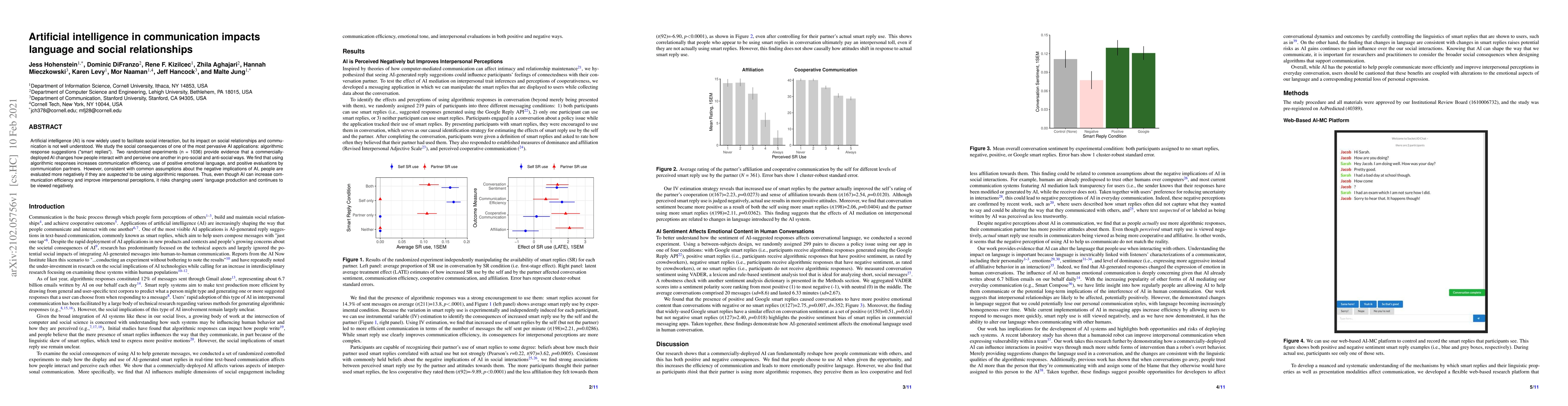 This research highlights the importance of considering the potential consequences of AI-mediated communication on human relationships and social dynamics.