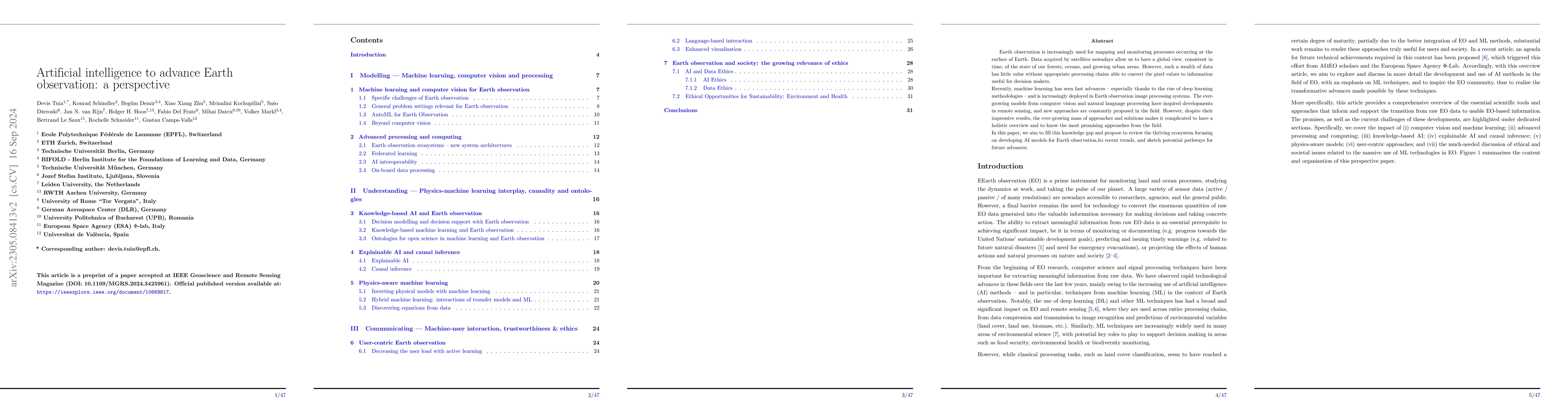 This article explores the transformative potential of artificial intelligence in advancing Earth observation, emphasizing the role of computer vision, machine learning, and other AI tools in converting raw EO data into actionable insights. It also addresses the challenges and ethical considerations inherent in the widespread use of these technologies.