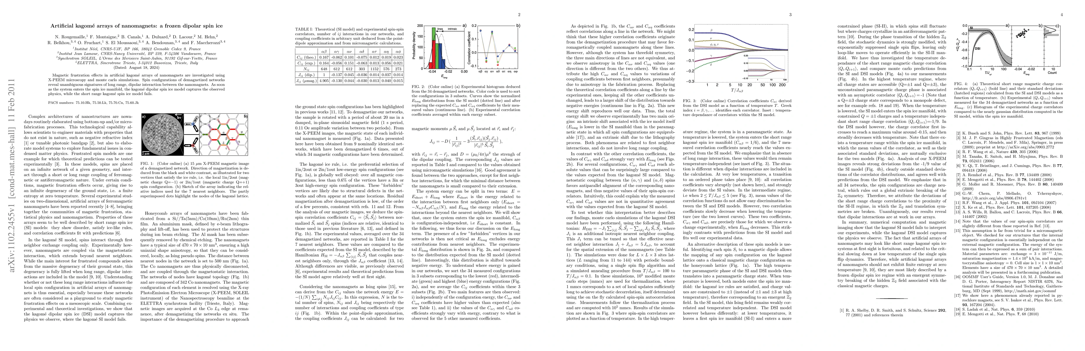 The study investigates magnetic frustration effects in artificial kagome arrays of nanomagnets using X-ray photoemission electron microscopy (X-PEEM) and Monte Carlo simulations.