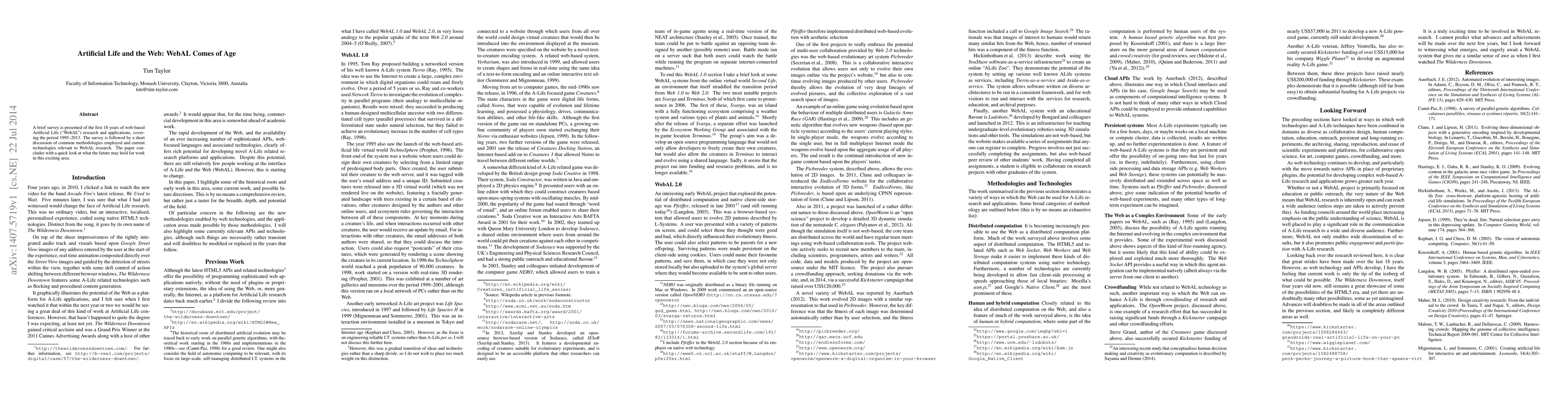 This paper surveys 18 years of web-based Artificial Life research, highlighting methodologies and technologies from 1995 to 2013, and speculates on future developments in this dynamic field.