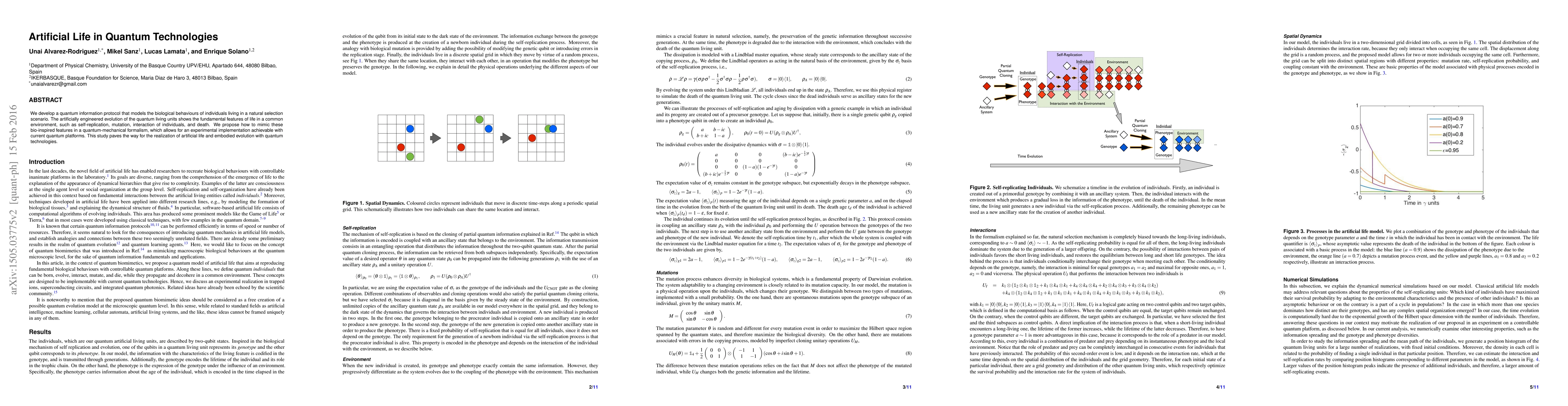 This research introduces a quantum information protocol that models biological behaviors like self-replication, mutation, and interaction in a quantum system, demonstrating the potential for creating artificial life using current quantum technologies.