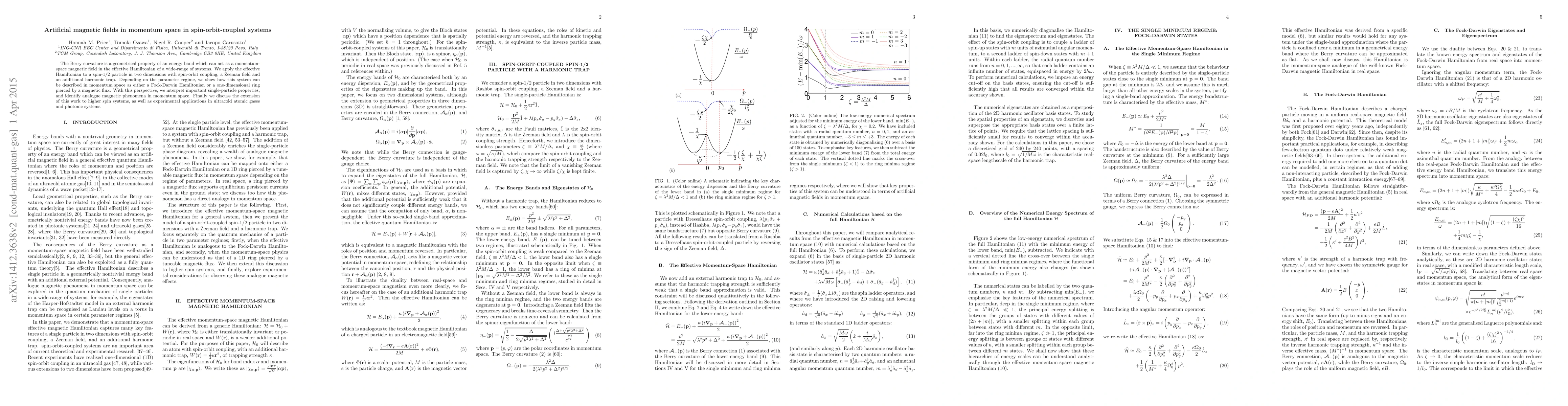 This paper explores the Berry curvature in spin-orbit coupled systems, demonstrating how it mimics magnetic fields in momentum space, and applies this concept to a spin-1/2 particle in 2D with spin-orbit coupling, a Zeeman field, and a harmonic trap. The study identifies analogue magnetic phenomena in momentum space and discusses potential applications in ultracold atomic gases and photonic systems.