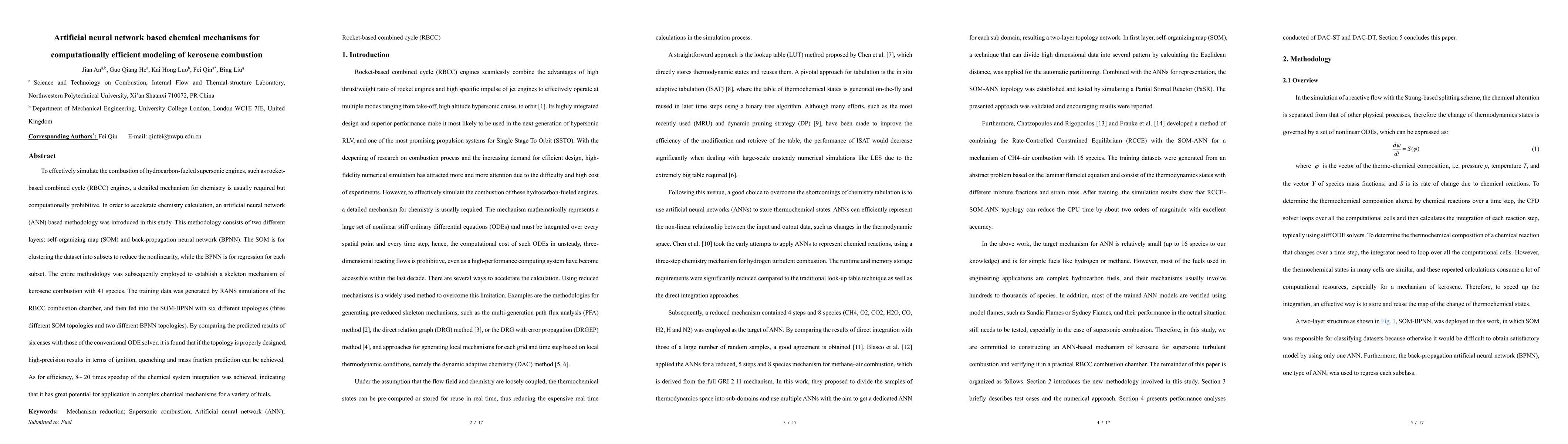 Researchers developed an artificial neural network based method to simulate kerosene combustion, achieving 8-20 times speedup and high precision results, with potential applications in complex chemical mechanisms for various fuels.