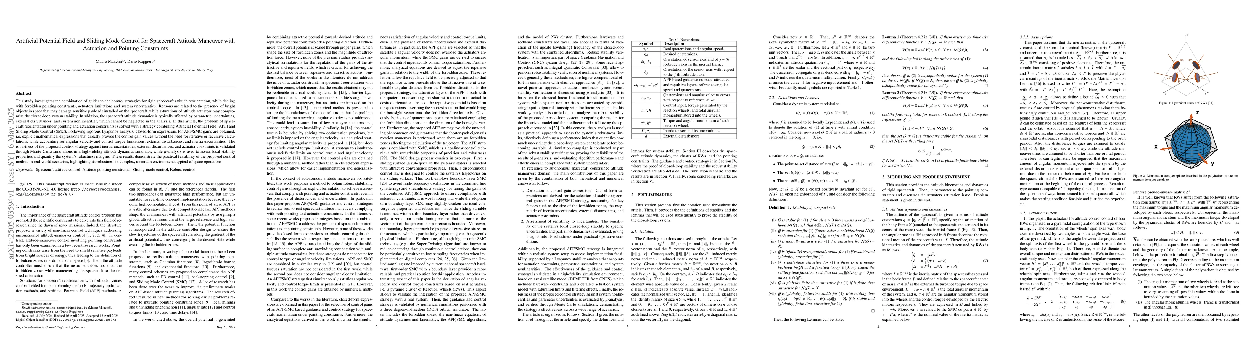 This study investigates the combination of guidance and control strategies for rigid spacecraft attitude reorientation, while dealing with forbidden pointing constraints, actuator limitations, and system uncertainties. These constraints arise due to the presence of bright objects in space that may damage sensitive payloads onboard the spacecraft, and the risk that actuator saturations may compromise closed-loop system stability. Furthermore, spacecraft attitude dynamics are typically affected by parametric uncertainties, external disturbances, and system nonlinearities, which cannot be neglected. In this article, the problem of spacecraft reorientation under pointing and actuation constraints is addressed using a strategy that combines Artificial Potential Field (APF) and Sliding Mode Control (SMC). A rigorous Lyapunov-based analysis yields closed-form expressions for APF/SMC gains, providing explicit mathematical formulas for gain values without the need for iterative computations. These expressions account for angular velocity and control torque limitations, external disturbances, and inertia uncertainties. The robustness of the proposed control strategy is demonstrated through Monte Carlo simulations using a high-fidelity attitude dynamics simulator. Additionally, mu-analysis is employed to assess local stability properties and quantify robustness margins. The results confirm the practical feasibility of the proposed method in real-world space scenarios, highlighting its effectiveness in uncertain and constrained environments.