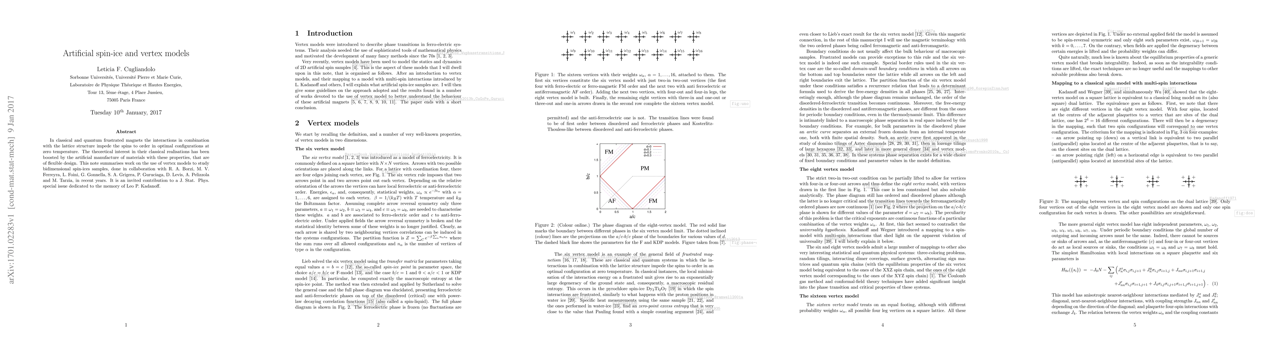 In classical and quantum frustrated magnets the interactions in combination with the lattice structure impede the spins to order in optimal configurations at zero temperature. The theoretical interest in their classical realisations has been boosted by the artificial manufacture of materials with these properties, that are of flexible design. This note summarises work on the use of vertex models to study bidimensional spin-ices samples, done in collaboration with R. A. Borzi, M. V. Ferreyra, L. Foini, G. Gonnella, S. A. Grigera, P. Guruciaga, D. Levis, A. Pelizzola and M. Tarzia, in recent years. It is an invited contribution to a J. Stat. Phys. special issue dedicated to the memory of Leo P. Kadanoff.