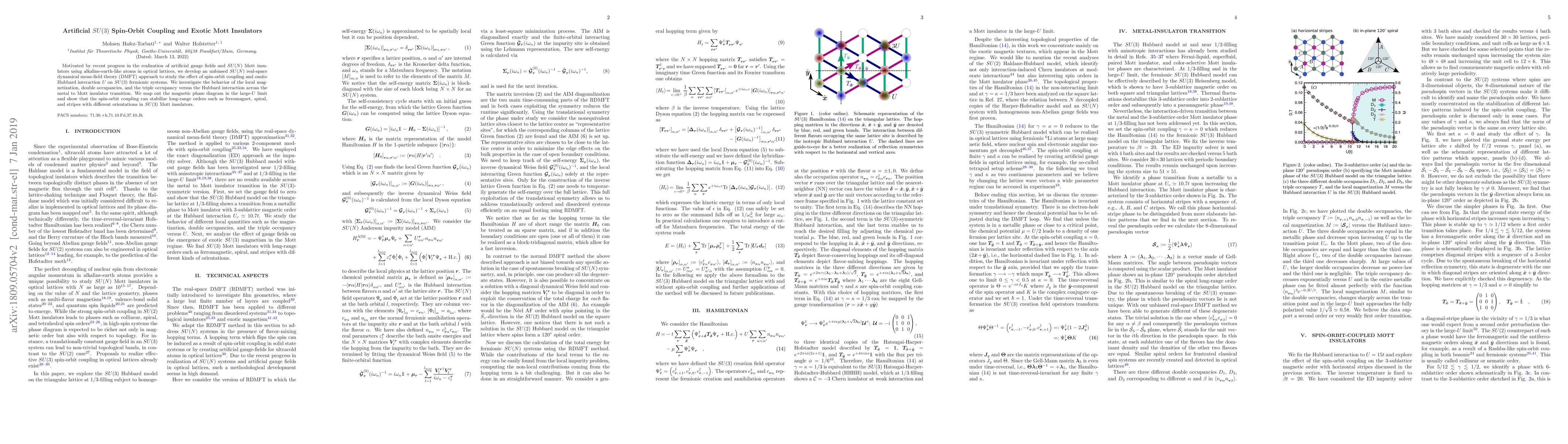 This study uses an $SU(3)$ real-space dynamical mean-field theory to examine the effects of spin-orbit coupling and Hubbard interactions on artificial gauge fields in fermionic systems. It reveals that spin-orbit coupling can stabilize various magnetic orders in $SU(3)$ Mott insulators, mapping out their magnetic phase diagram.