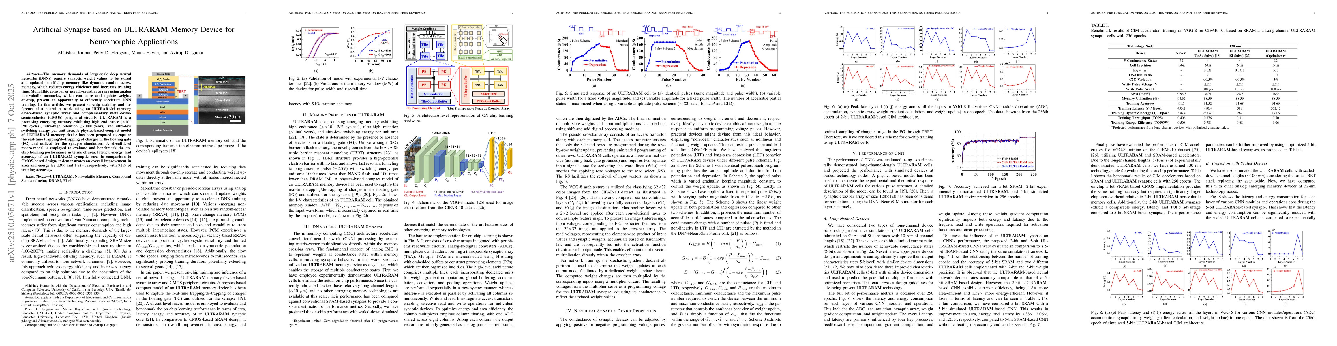 This research advances neuromorphic computing by demonstrating the viability of ULTRARAM as a synaptic device for energy-efficient, high-performance on-chip neural network accelerators, potentially enabling compact AI systems for edge applications.