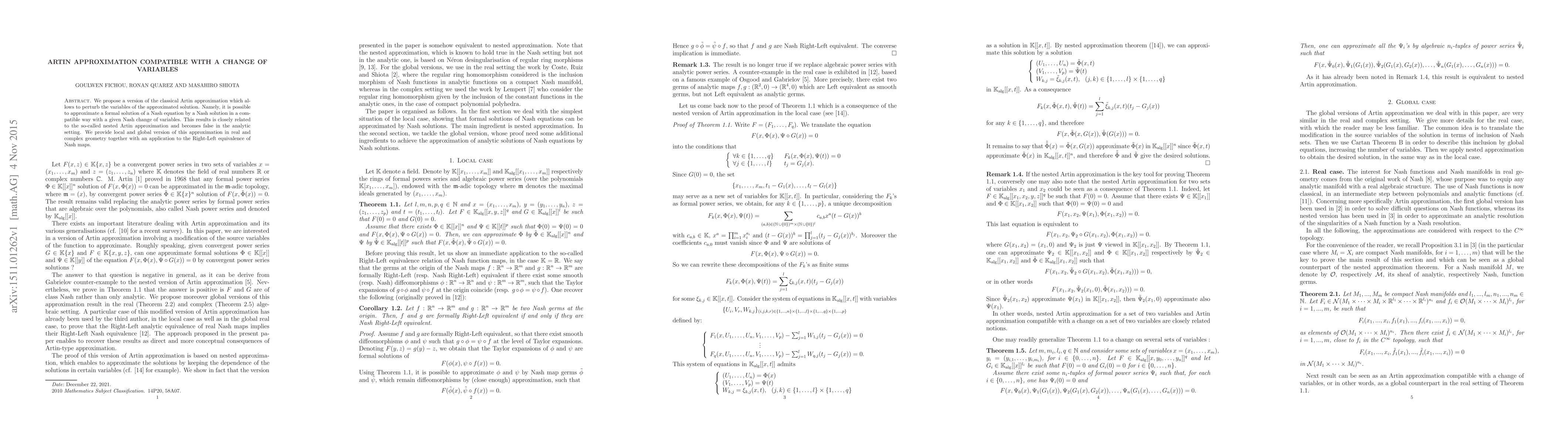 This paper proposes an enhanced version of Artin's approximation theorem that accommodates variable changes, enabling the approximation of Nash solutions via compatible transformations. The authors present both local and global versions applicable in real and complex geometry, with an application to the Right-Left equivalence of Nash maps.