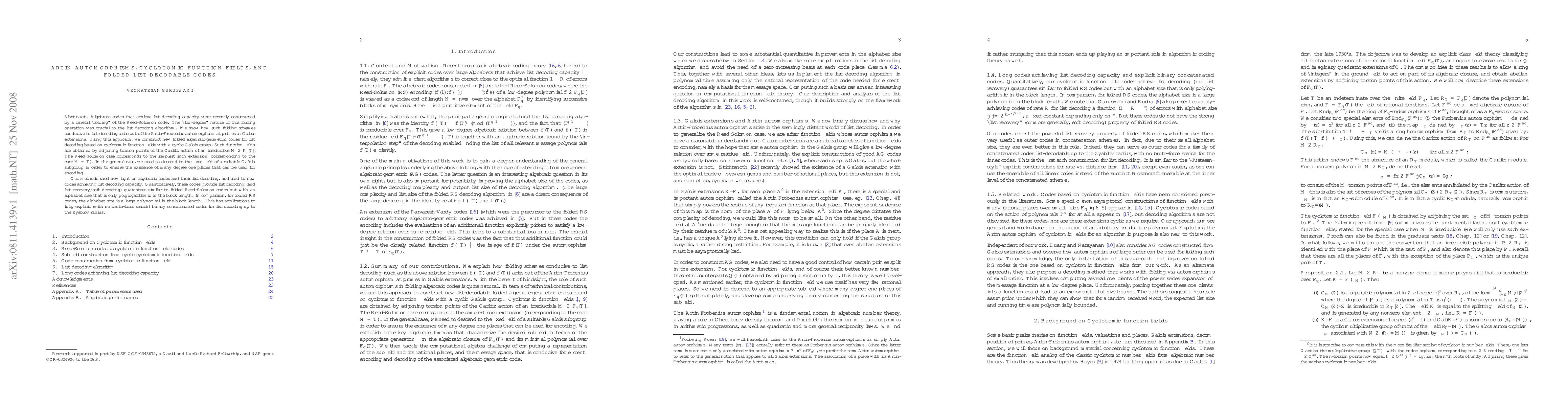Algebraic codes that achieve list decoding capacity were recently constructed by a careful ``folding'' of the Reed-Solomon code. The ``low-degree'' nature of this folding operation was crucial to the list decoding algorithm. We show how such folding schemes conducive to list decoding arise out of the Artin-Frobenius automorphism at primes in Galois extensions. Using this approach, we construct new folded algebraic-geometric codes for list decoding based on cyclotomic function fields with a cyclic Galois group. Such function fields are obtained by adjoining torsion points of the Carlitz action of an irreducible $M \in \F_q[T]$. The Reed-Solomon case corresponds to the simplest such extension (corresponding to the case $M=T$). In the general case, we need to descend to the fixed field of a suitable Galois subgroup in order to ensure the existence of many degree one places that can be used for encoding. Our methods shed new light on algebraic codes and their list decoding, and lead to new codes achieving list decoding capacity. Quantitatively, these codes provide list decoding (and list recovery/soft decoding) guarantees similar to folded Reed-Solomon codes but with an alphabet size that is only polylogarithmic in the block length. In comparison, for folded RS codes, the alphabet size is a large polynomial in the block length. This has applications to fully explicit (with no brute-force search) binary concatenated codes for list decoding up to the Zyablov radius.
