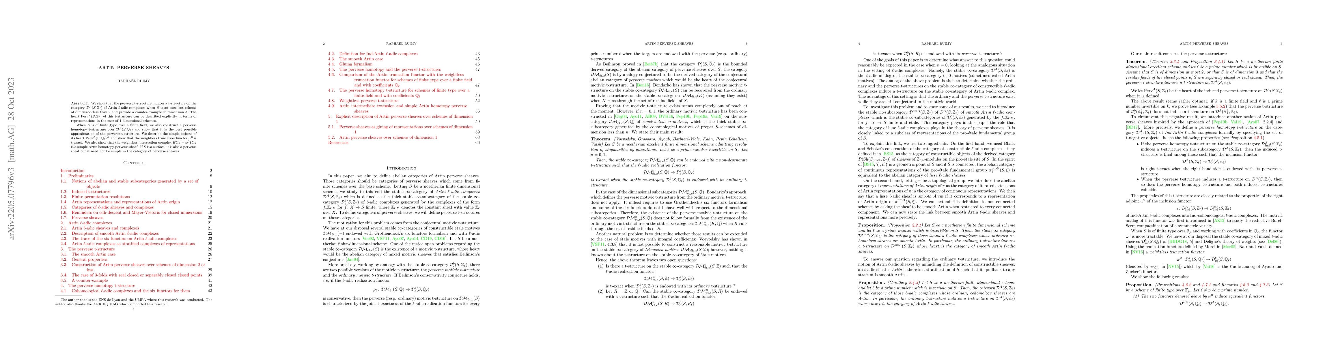This paper demonstrates that the perverse t-structure induces a t-structure on Artin $\ell$-adic complexes for schemes of dimension less than $2$, while providing a counterexample for dimension $3$. It constructs a perverse homotopy t-structure for schemes of finite type over finite fields and describes its simple objects.