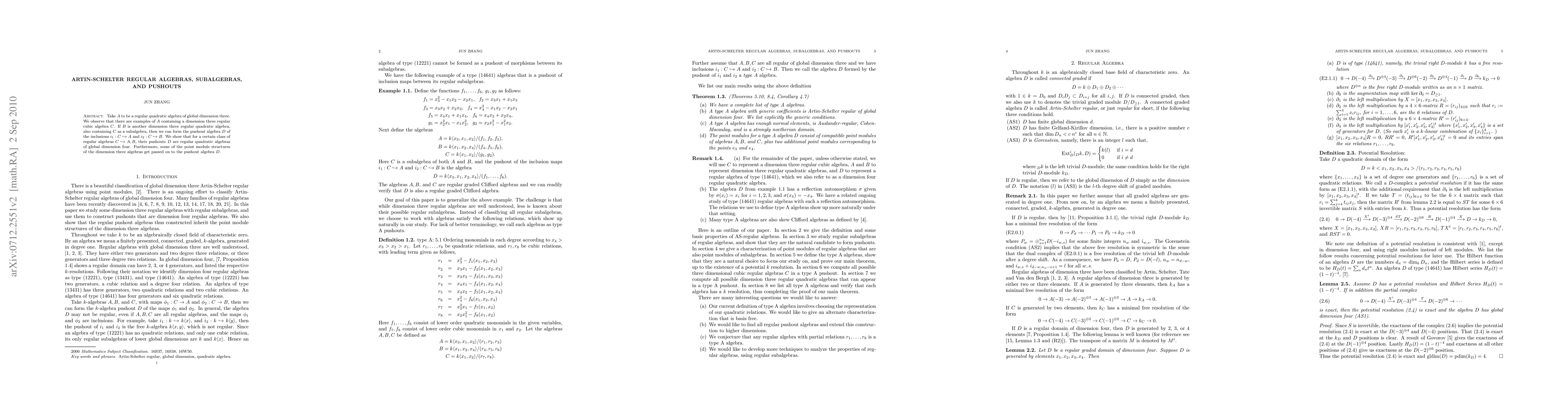 Take $A$ to be a regular quadratic algebra of global dimension three. We observe that there are examples of $A$ containing a dimension three regular cubic algebra $C$. If $B$ is another dimension three regular quadratic algebra, also containing $C$ as a subalgebra, then we can form the pushout algebra $D$ of the inclusions $i_1:C\hookrightarrow A$ and $i_2:C\hookrightarrow B$. We show that for a certain class of regular algebras $C\hookrightarrow A,B$, their pushouts $D$ are regular quadratic algebras of global dimension four. Furthermore, some of the point module structures of the dimension three algebras get passed on to the pushout algebra $D$.