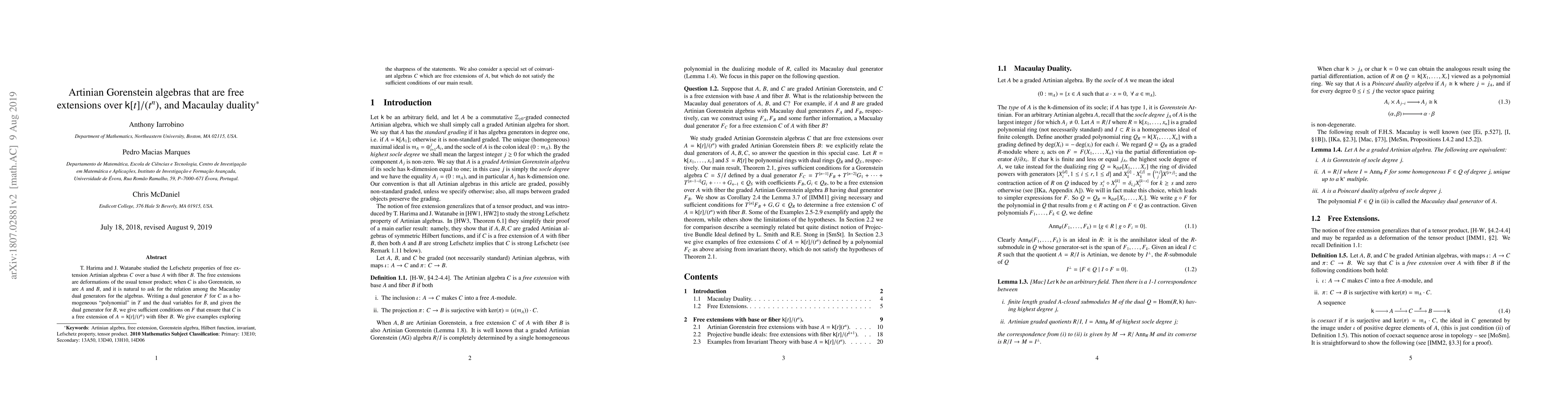 T. Harima and J. Watanabe studied the Lefschetz properties of free extension Artinian algebras $C$ over a base $A$ with fibre $B$. The free extensions are deformations of the usual tensor product, when $C$ is also Gorenstein, so are $A$ and $B$, and it is natural to ask for the relation among the Macaulay dual generators for the algebras. Writing a dual generator $F$ for $C$ as a homogeneous "polynomial" in $T$ and the dual variables for $B$, and given the dual generator for $B$, we give sufficient conditions on $F$ that ensure that $C$ is a free extension of $A={\sf k}[t]/(t^n)$ with fiber $B$. We give examples that explore the sharpness of the statements. We also consider a special set of coinvariant algebras $C$ which are free extensions of $A$, but which do not satisfy the sufficient conditions of our main result.