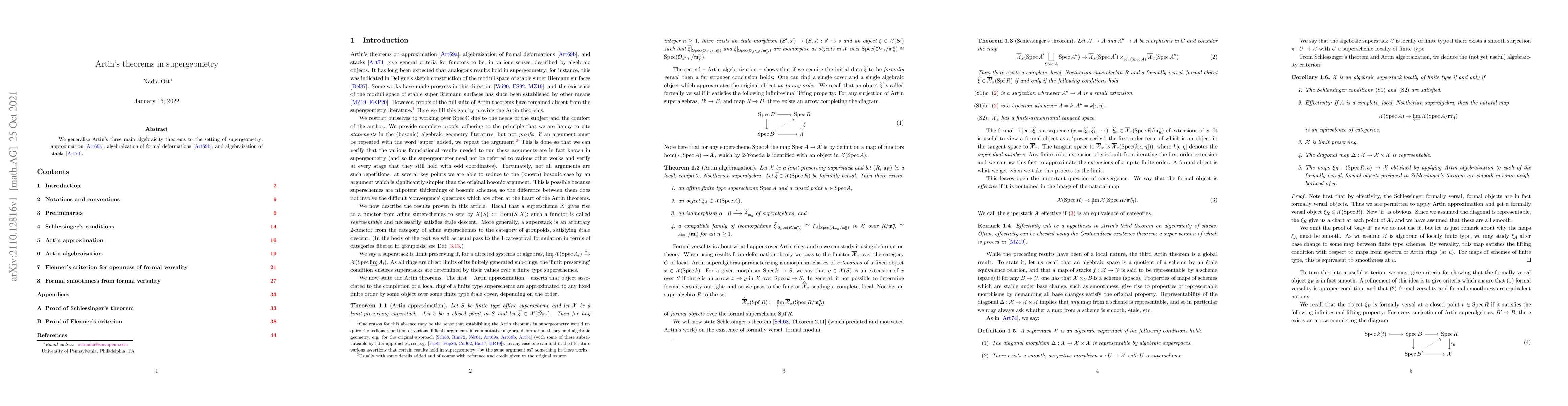 Summary: This paper extends Artin's algebraicity theorems into supergeometry, encompassing Artin approximation, formal moduli algebraization, and stack algebraization, thereby broadening the applicability of these foundational results.
