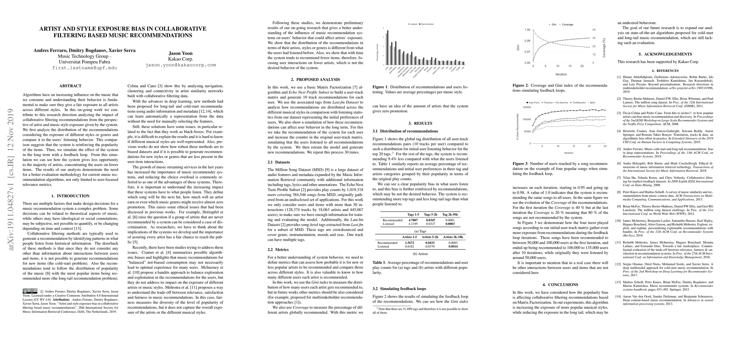 This paper examines how collaborative filtering algorithms in music recommendation systems affect artist and music style exposure, finding that the system tends to reinforce popular items and concentrate user attention on fewer artists, thus calling for improved evaluation methodologies beyond user-focused relevance metrics.